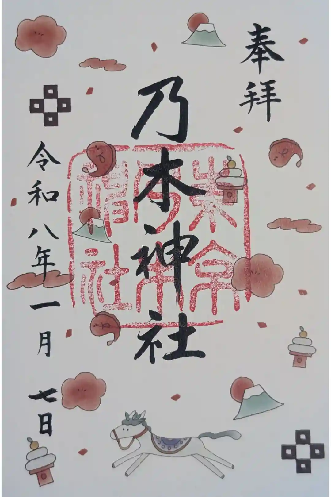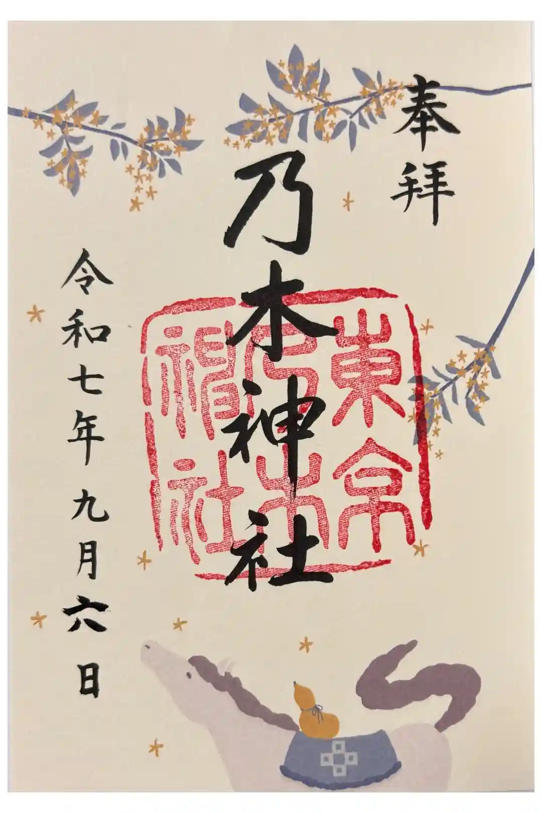 真ん中に乃木神社と書かれ、右下にナンテンの木のイラスト、真ん中に東京乃木神社の印が押されています。