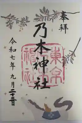 真ん中に乃木神社と書かれ、その下に東京乃木神社の印が押されたシンプルな御朱印です。