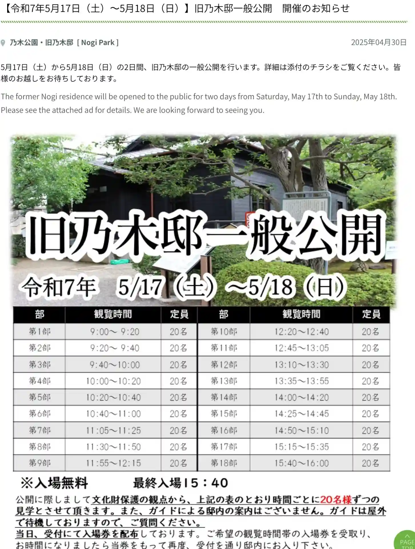 乃木神社の公式サイトで、以下の情報を得て、お参りに行ってきました。
