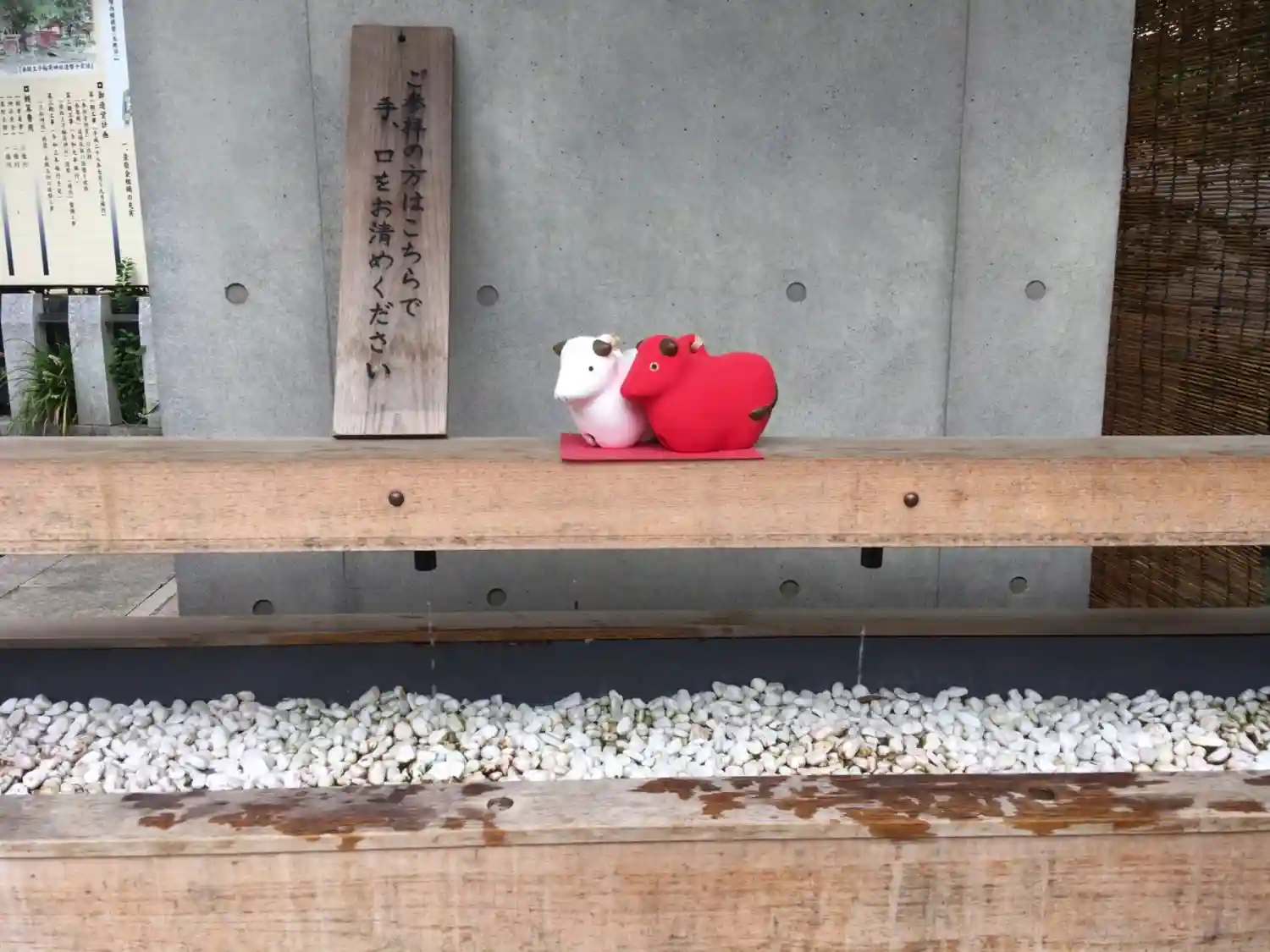 手水舍には、トラさんが居ましたが、それを斜め後ろから見守る丑…
