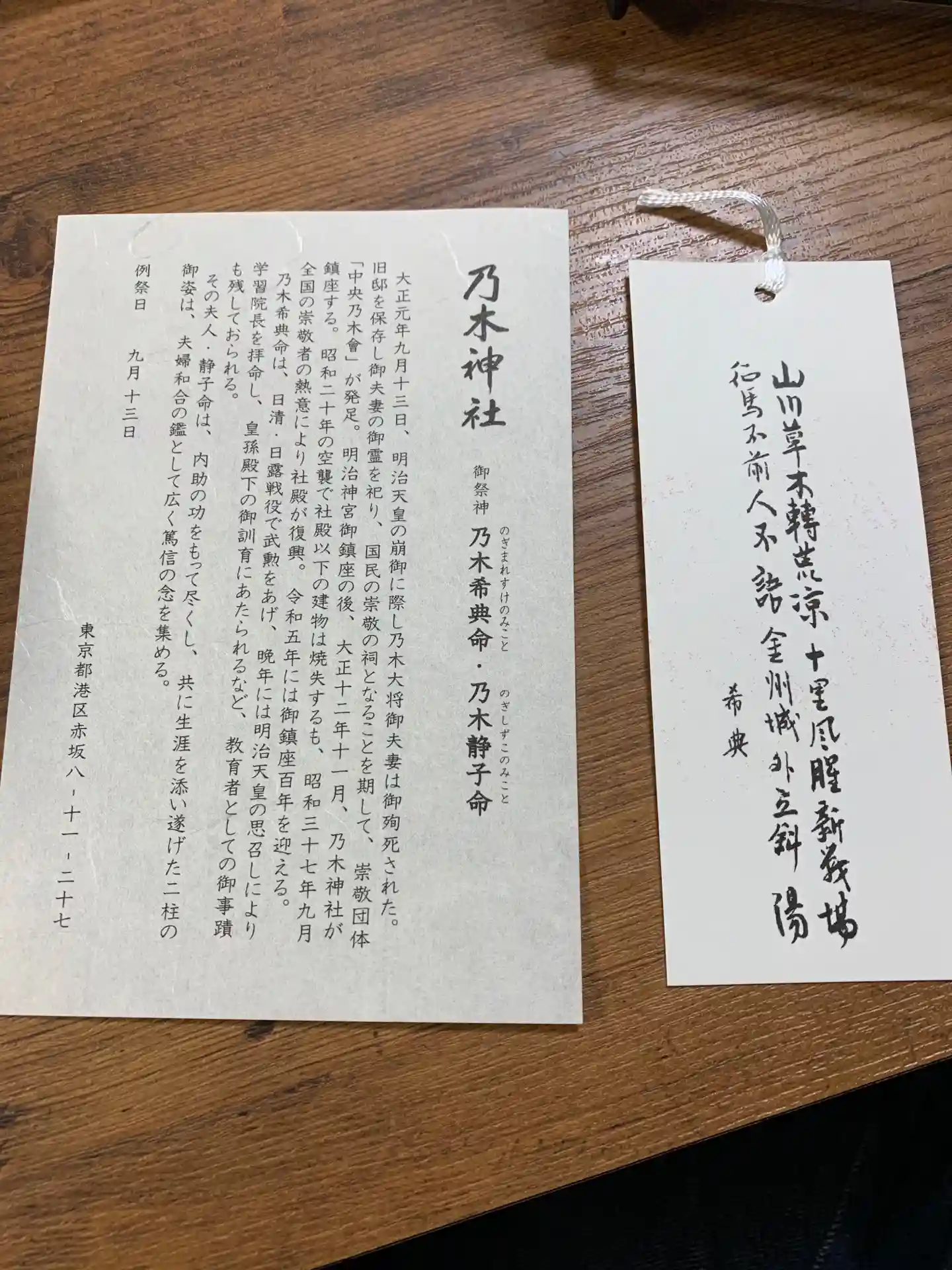 御朱印と一緒に同封されていた、乃木将軍の詠んだ詩のしおりです。