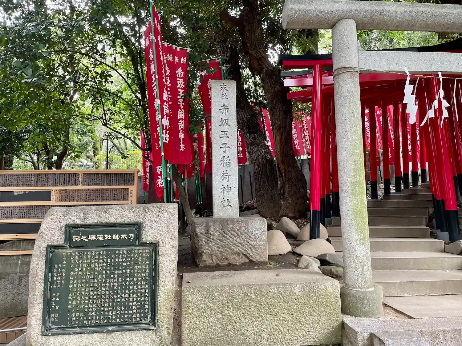 東京都港区赤坂に鎮座する乃木神社の境内末社であり、昭和37年(1962)に創建された。乃木神社の御祭神である乃木夫妻が崇敬していた王子稲荷神社を乃木神社の戦災復興を機にこの地に勧請した縁の神社である。