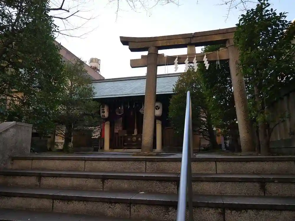 東京・六本木の六本木ヒルズのすぐそばにあります。一の鳥居の正面には、六本木ヒルズのレジデンス棟が見えました。境内には港七福神の寿老神があります。