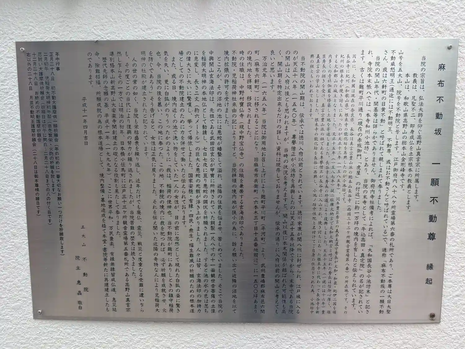 不動院は港区六本木にある高野山真言宗寺院で、五大山と号します。本尊は不動明王。創建年代等は不詳な…