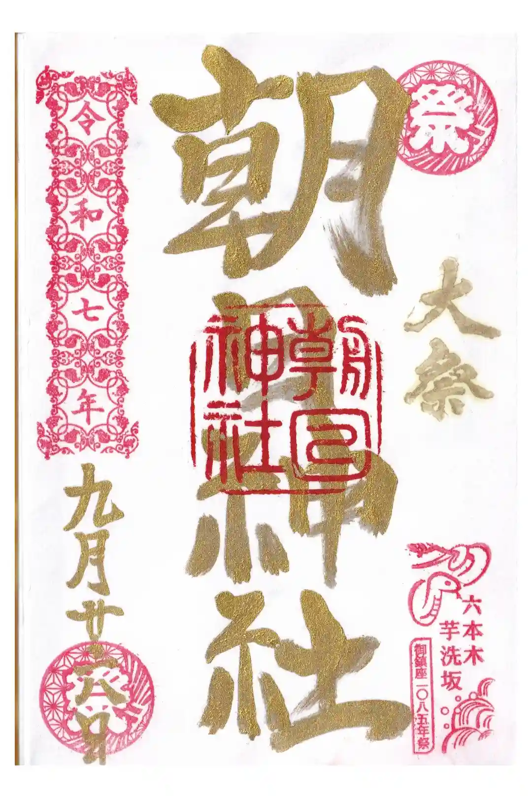 朝日神社 9月大祭御朱印 お書き入れ