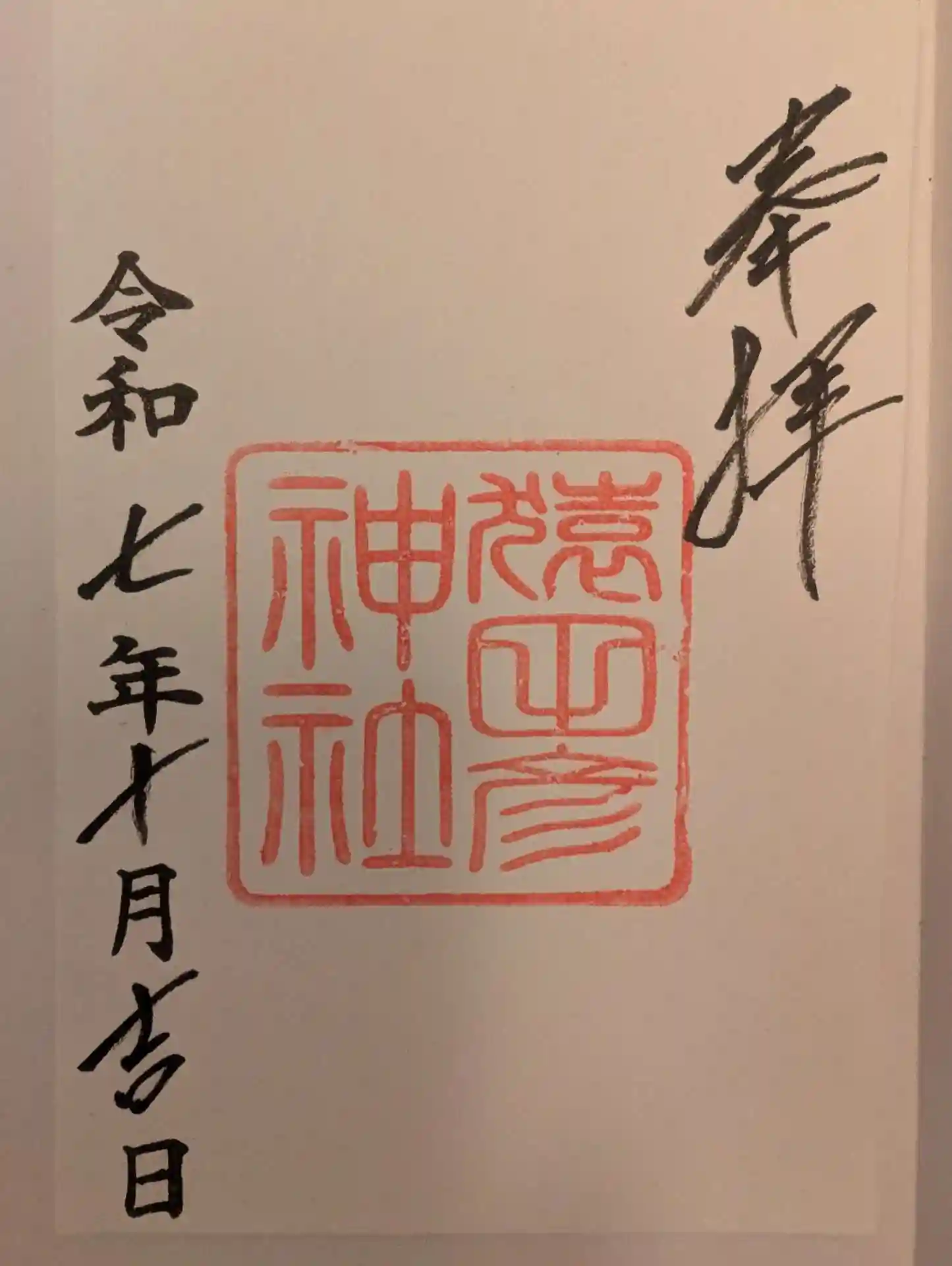 御朱印を書置きにて拝受しました。