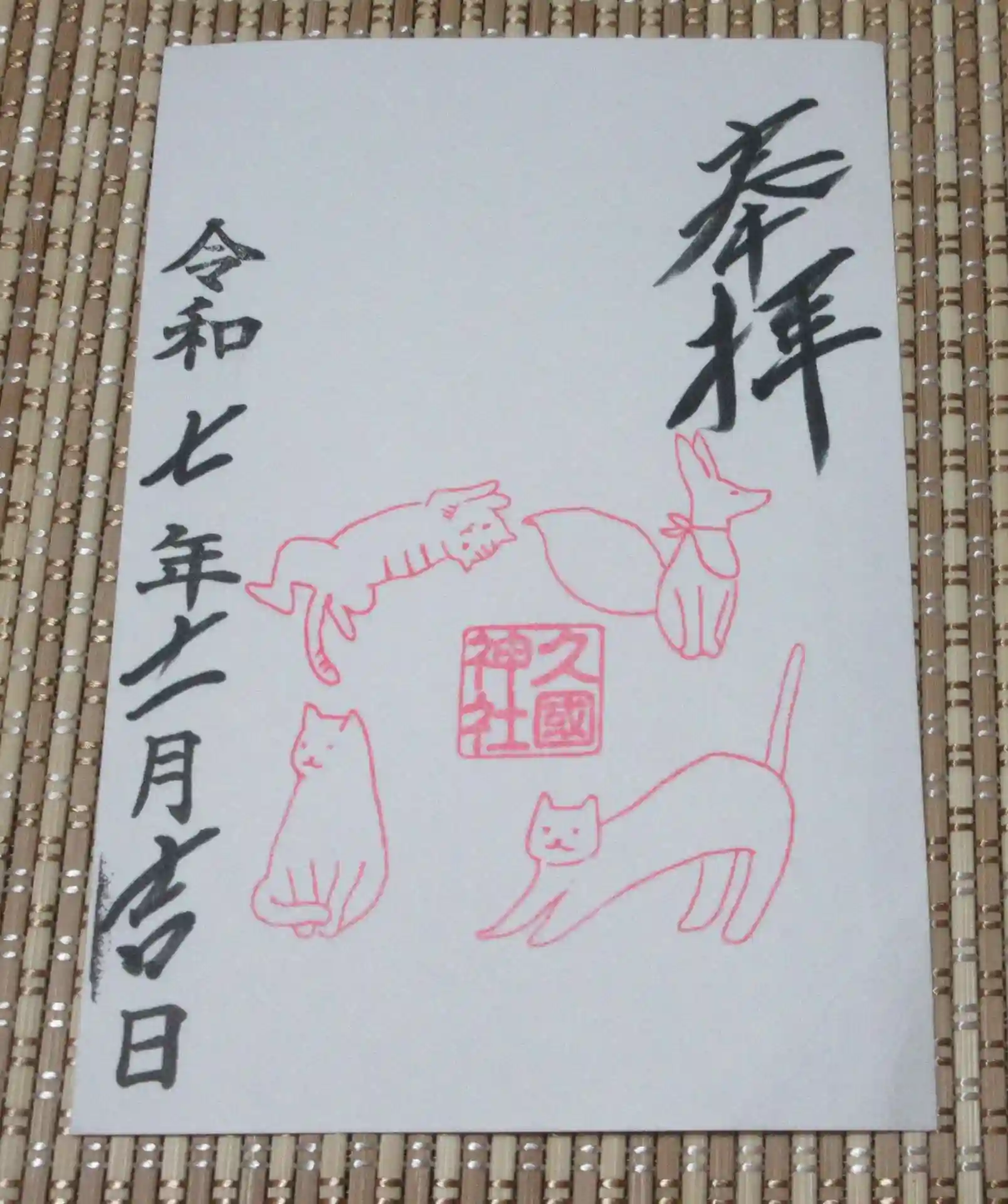 数種類の書き置き御朱印が用意されていたが、私が選んだのは、もちろん猫のものだ。