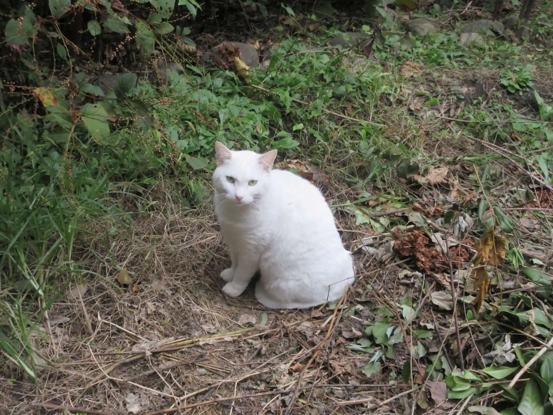 迎えてくれたのは白猫なのだが、私が鳥居から石段を上がろうとする時には黒猫も見かけたのだ。