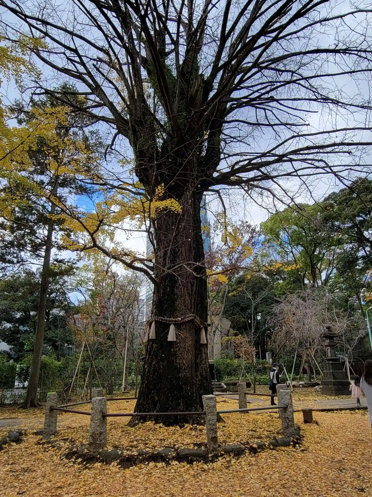 銀杏の葉が地面にたくさん落ちていて、きれいでした。