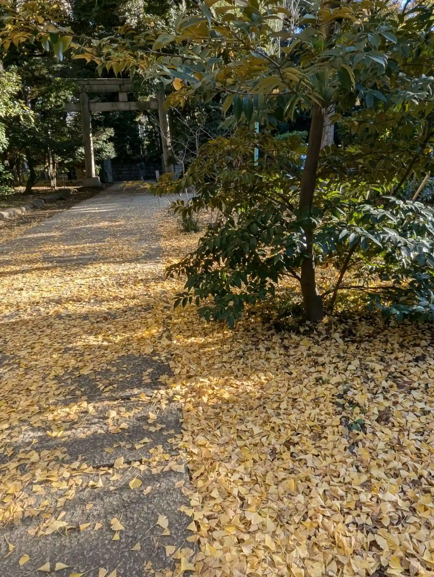 イチョウの黄色い葉が落ちて、黄色いじゅうたん♪