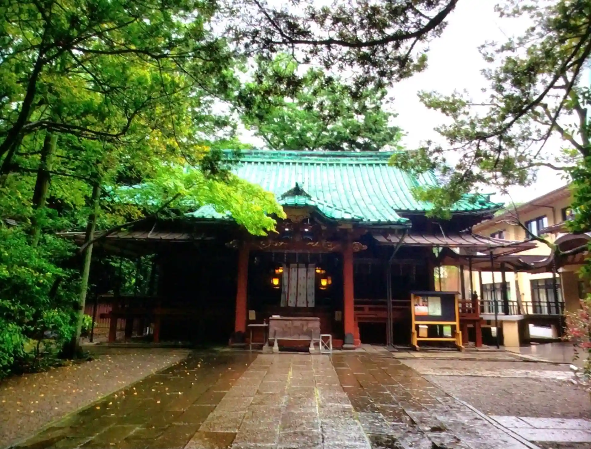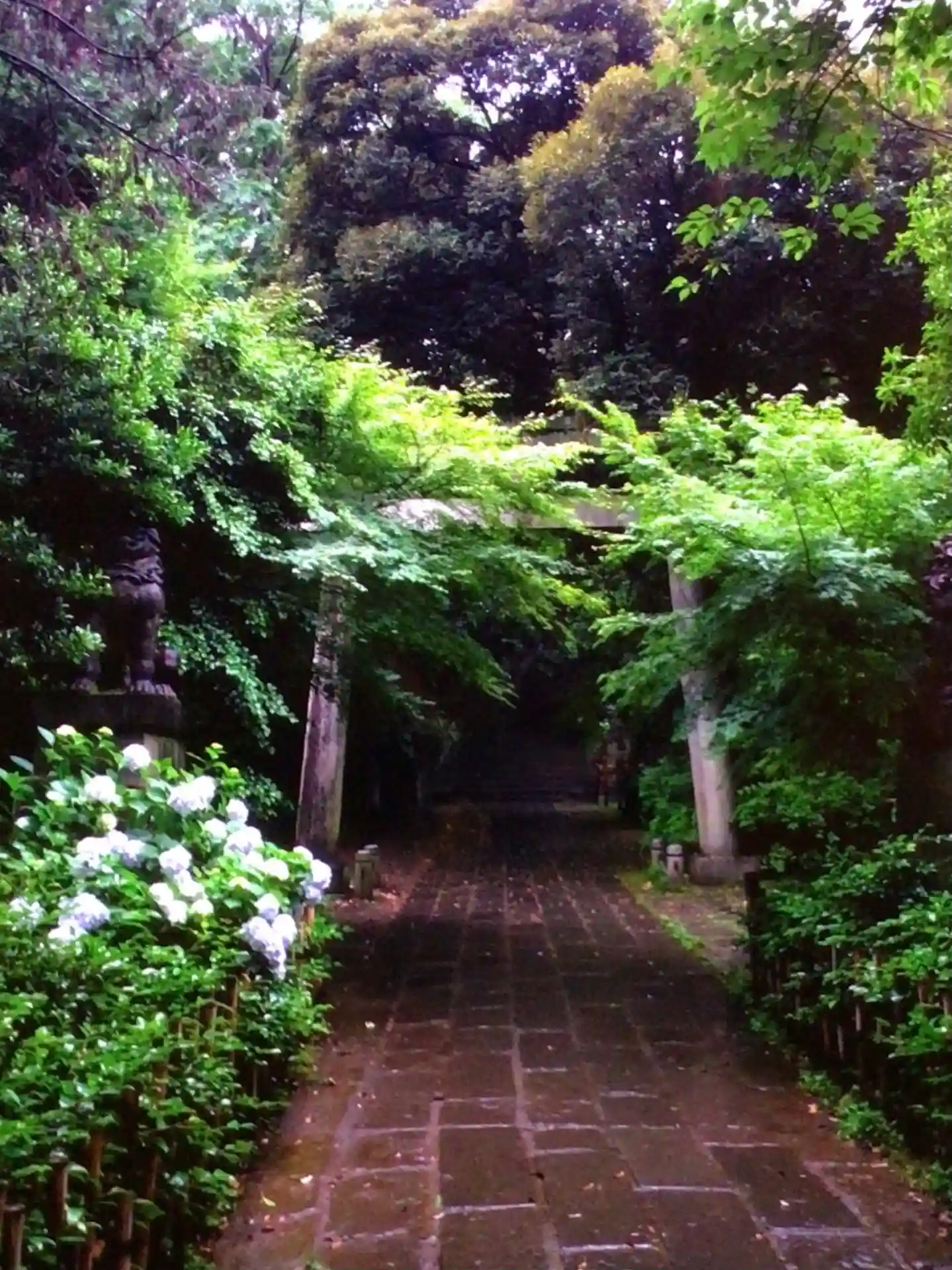 四合稲荷周りは,雨だと緑の濃さが際立って好きな光景です。