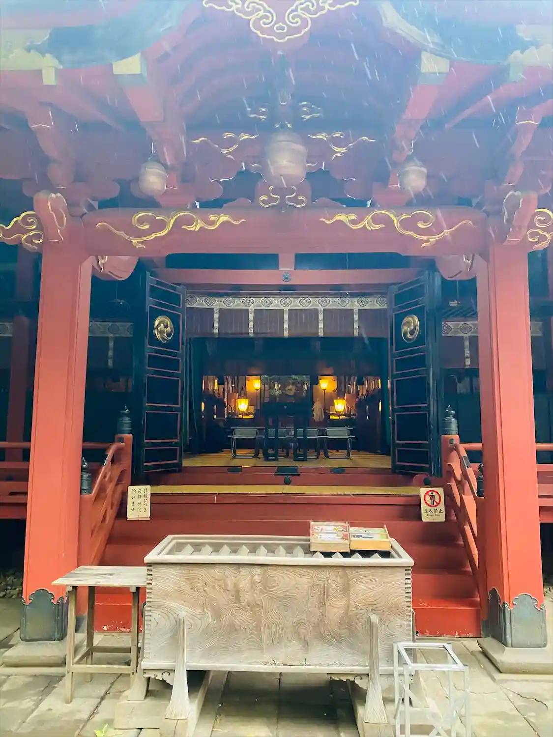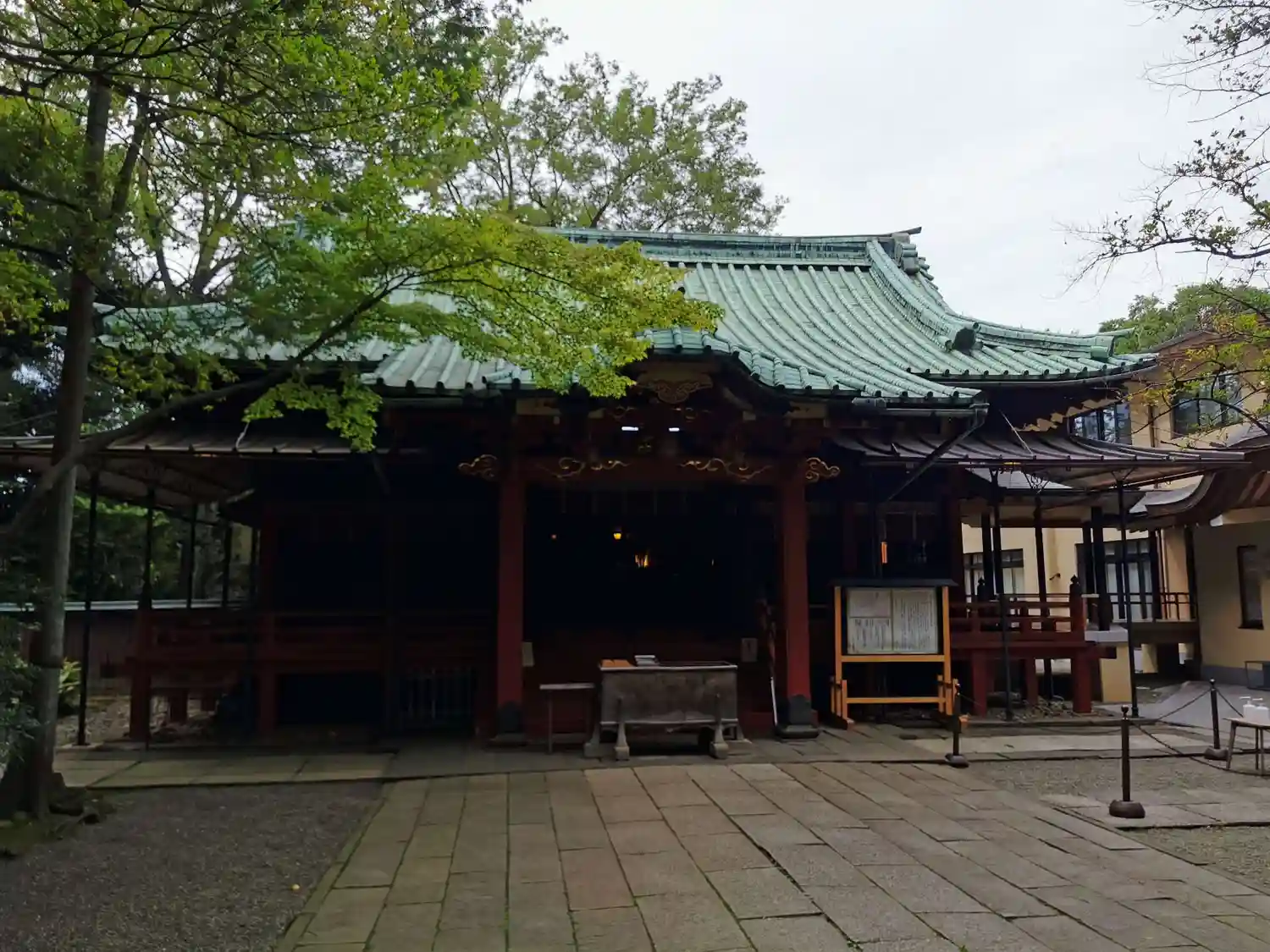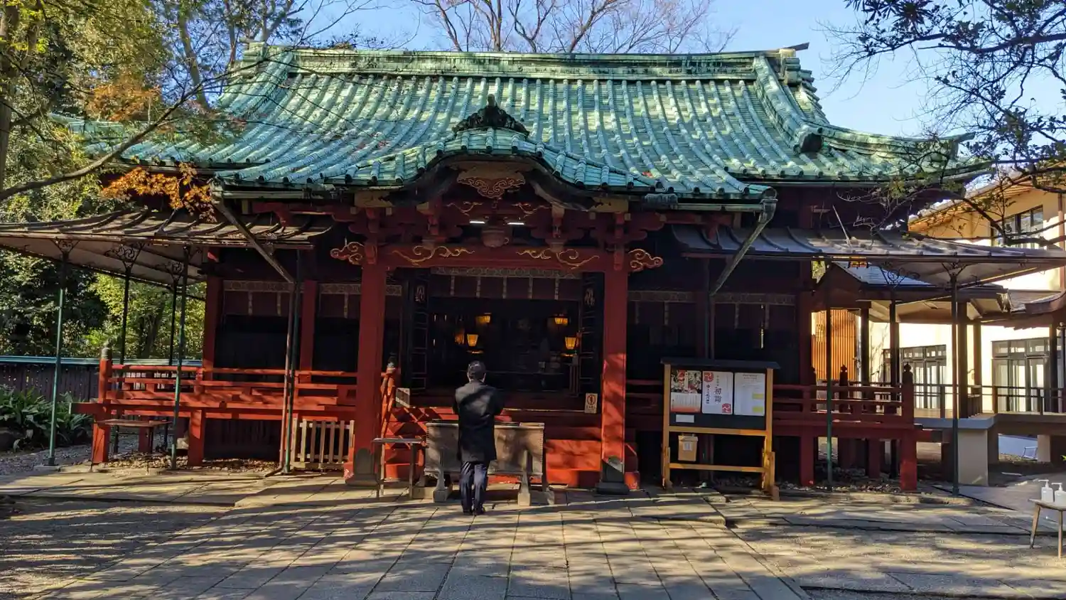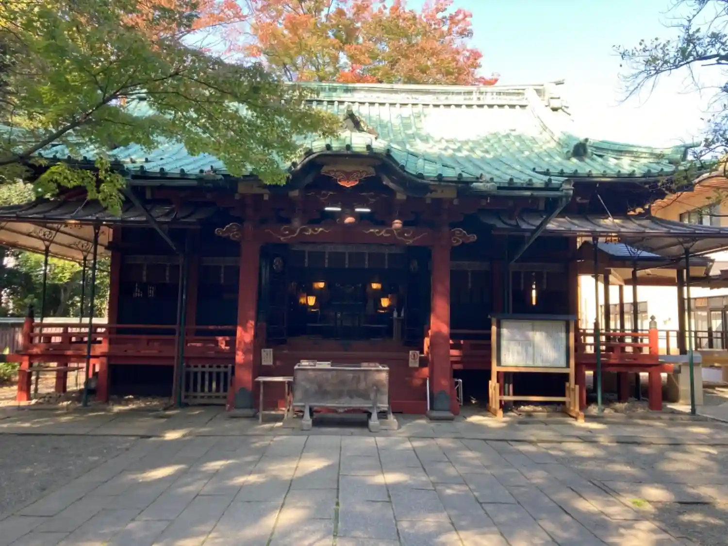 社殿。権現造。関東大震災や東京大空襲を奇跡的に被災せず、江戸当時のままの姿を残しています。東京都の有形文化財に指定されています。