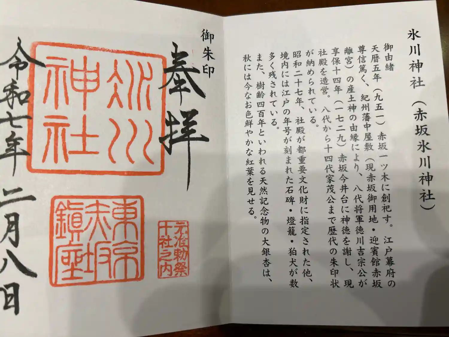 赤坂氷川神社周辺の御朱印