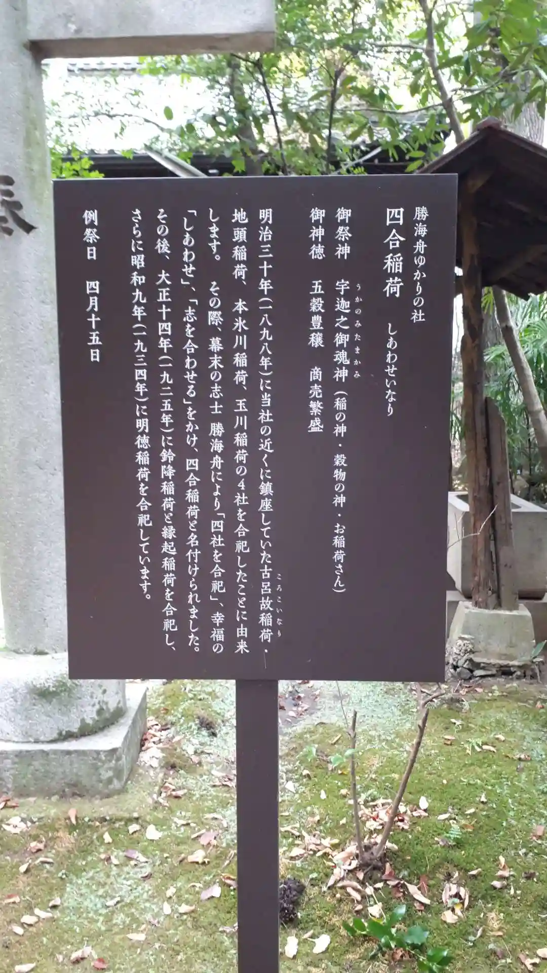 隣に「勝海舟邸」があり、彼が建立した「四合神社(しあわせじん…