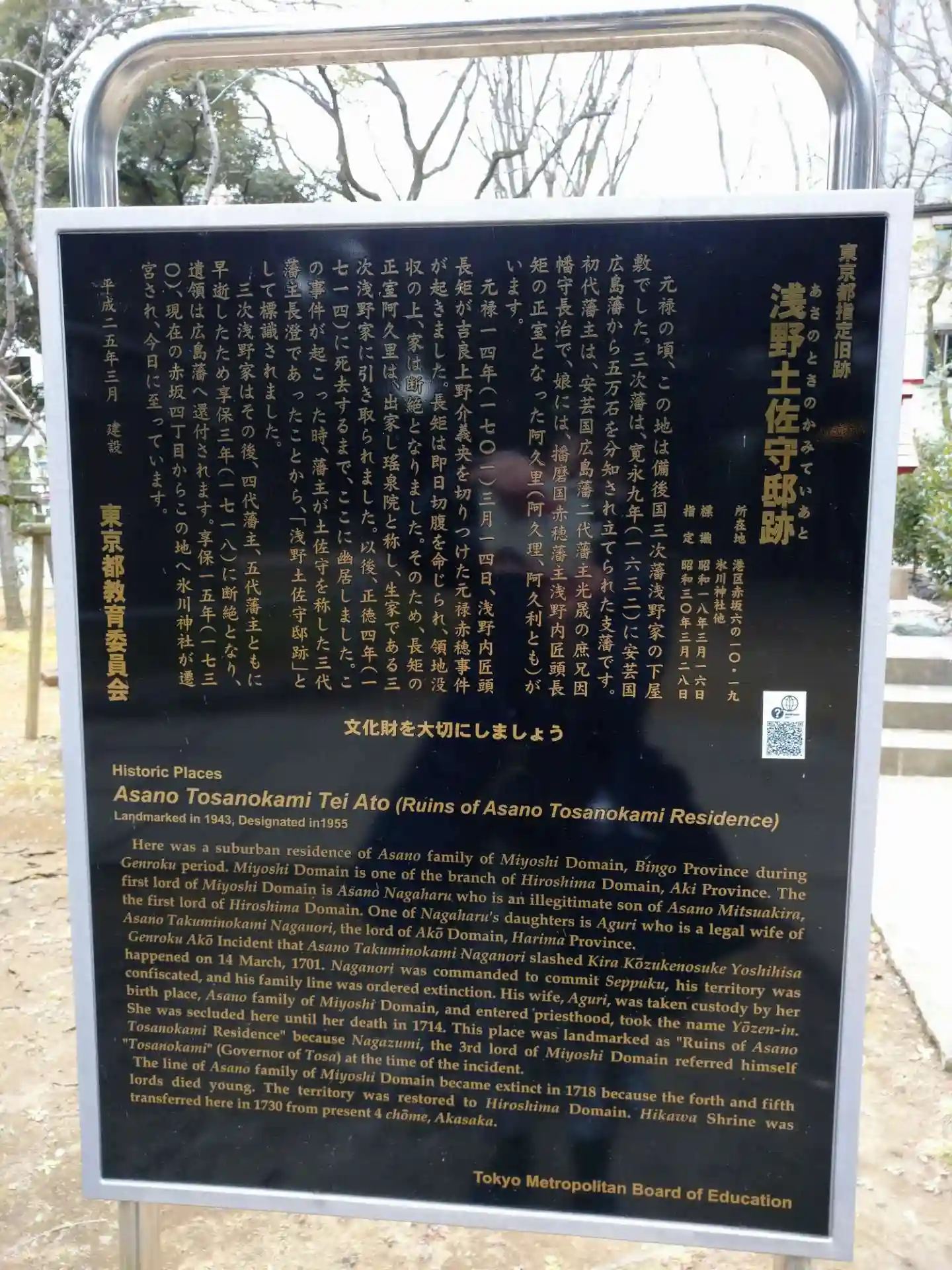 浅野土佐守邸跡の解説板