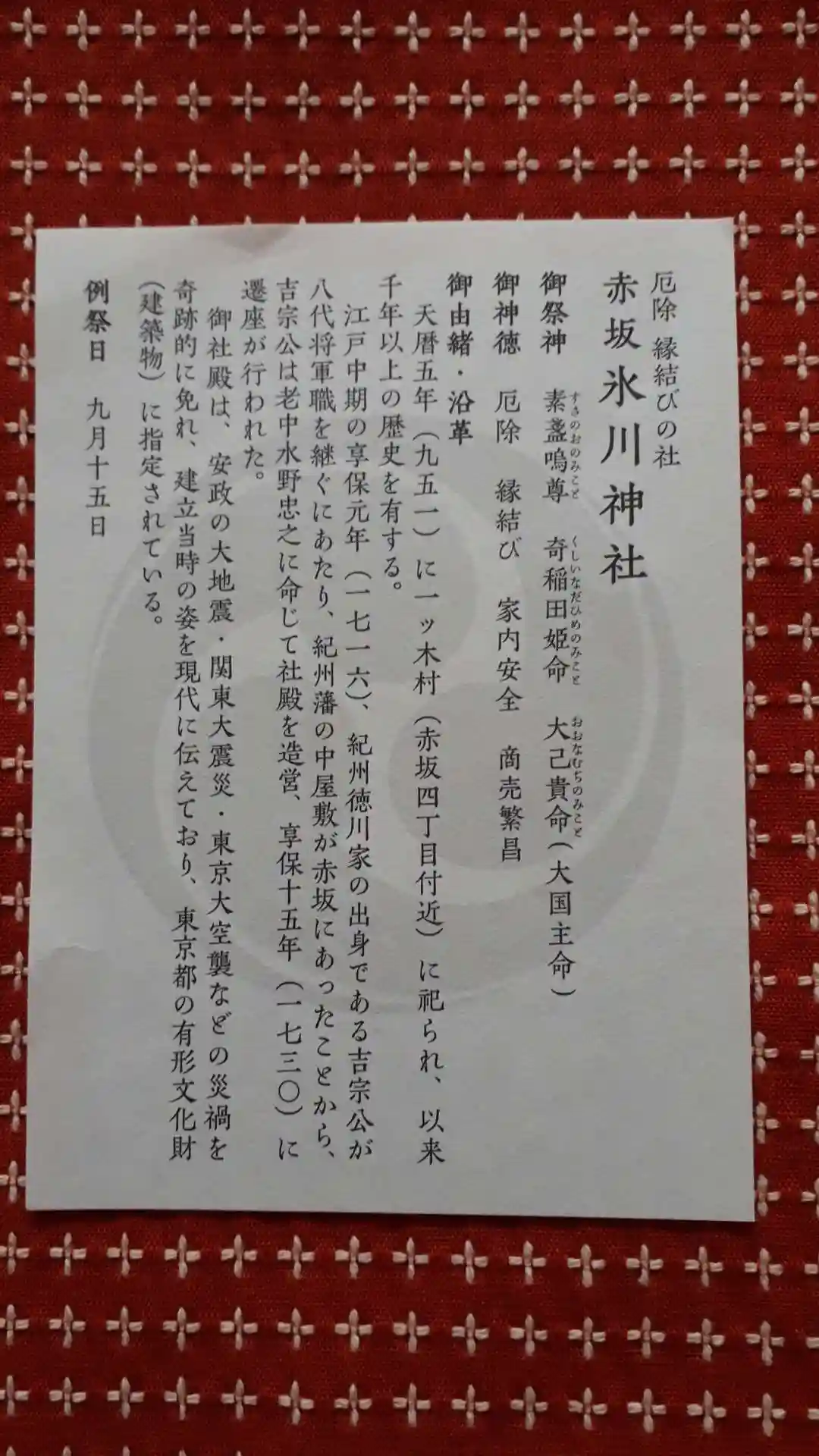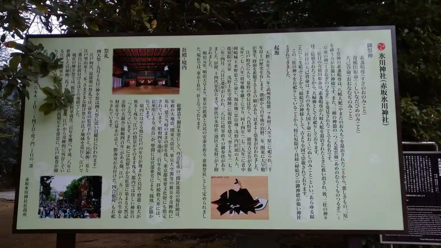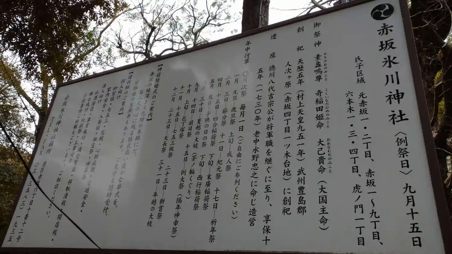 天暦五年(951)赤坂一ツ木に創祀す。紀州徳川家赤坂邸の…