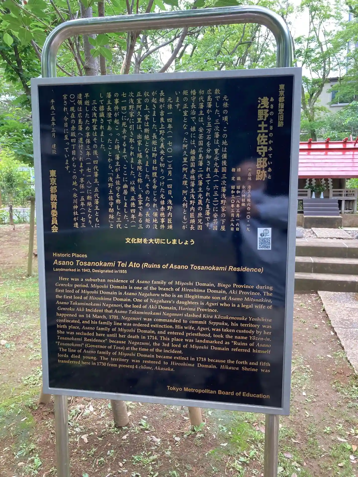 浅野土佐守邸跡の解説板