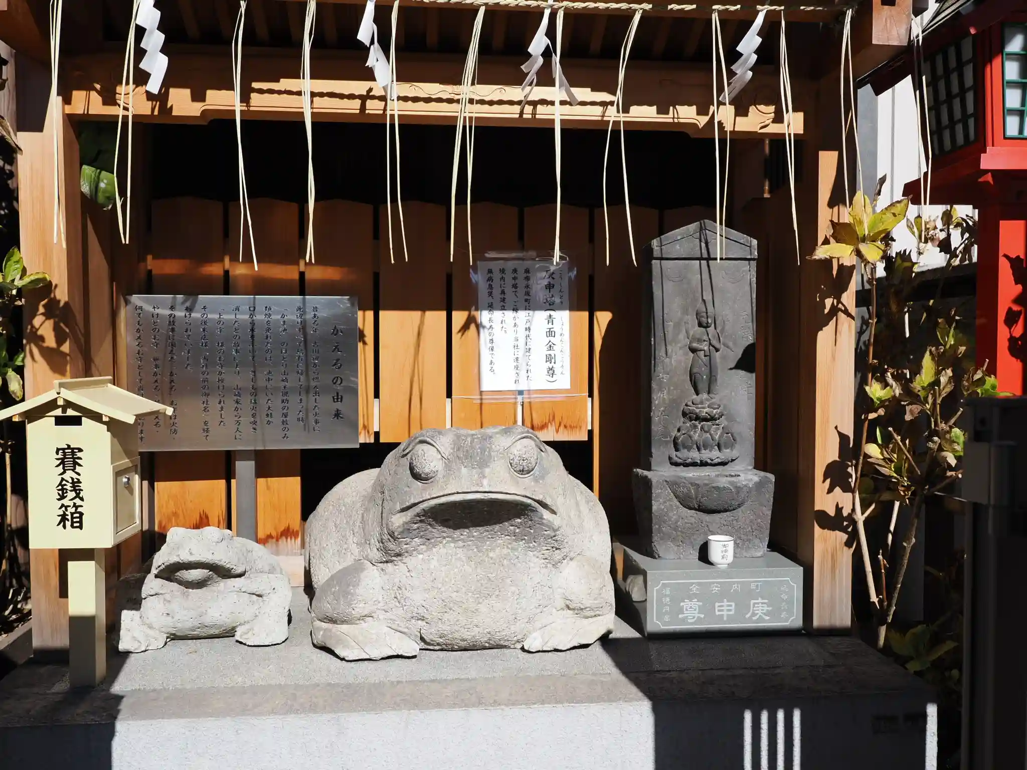 麻布十番の出口横に大きな鳥居が⛩️お稲荷さんですがお狐さまの像がなくて作ろうとされているようです🦊無事帰れるようにかえるにもお詣りして来ました🐸