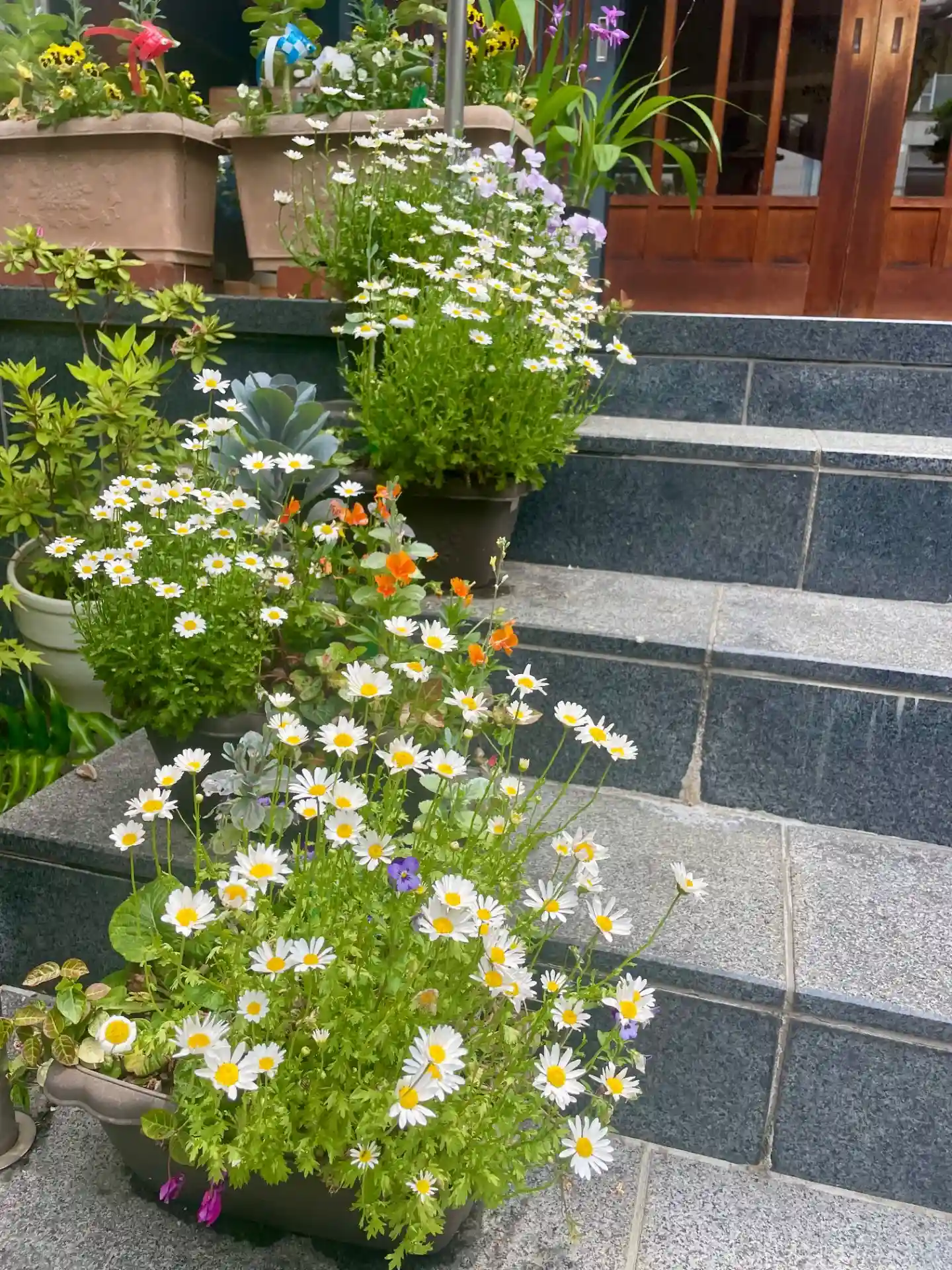 階段のマーガレットも見頃です☺️