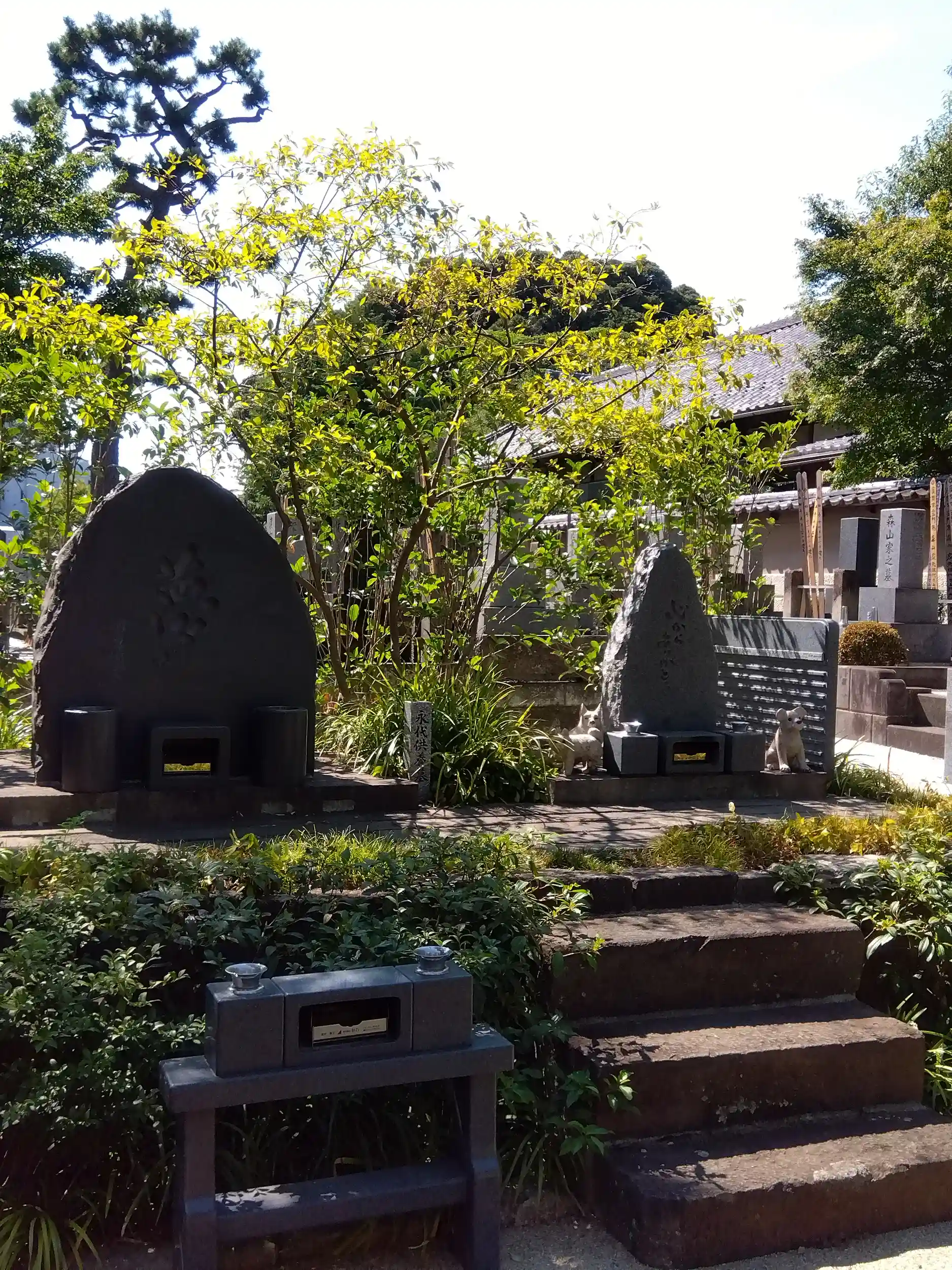 墓所の入口にはペスト流行時の鼠を供養した鼠塚、六地蔵(?五地蔵)、ペット供養碑、樹木葬があり、奥の諸大名の墓石群は圧巻!何やら合戦の戦闘隊形で、一番奥に武将黒田長政の墓碑が構ています。また、樹木葬案内所の横には存在感のある昌光院の五輪塔が祀られています。広尾という土地柄には似つかわしくない空間でした。