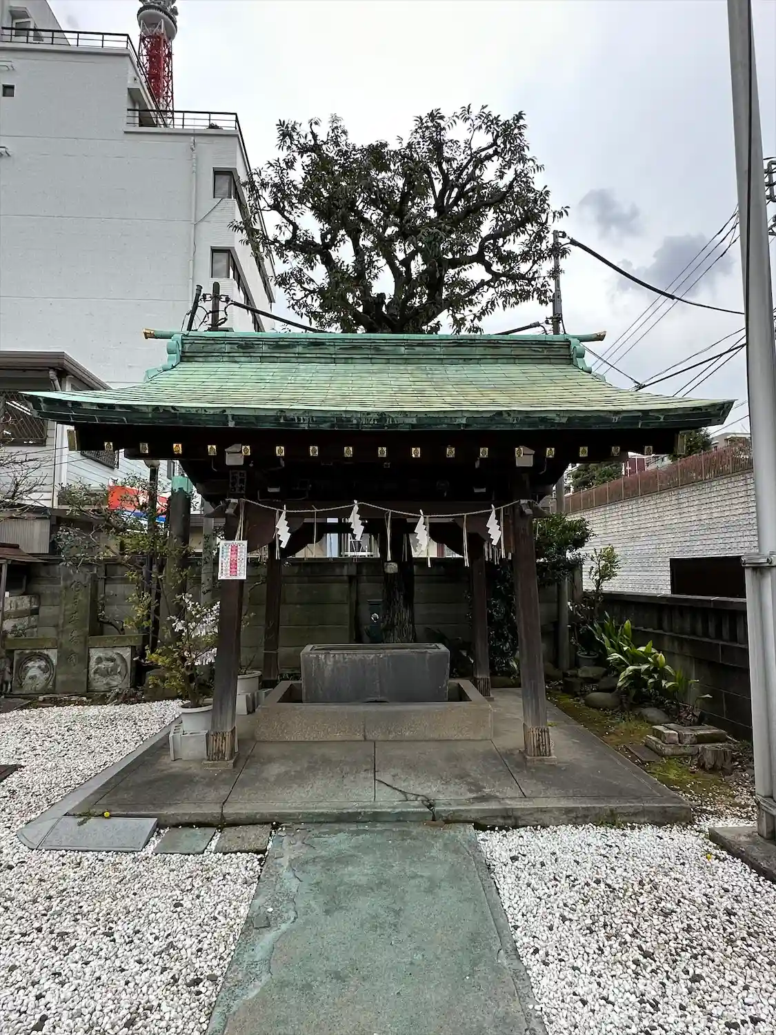 東京タワーの直ぐ近くにある小さいけれども手入れの行き届いたお社です😊社務所が閉まっており手水舎の側…