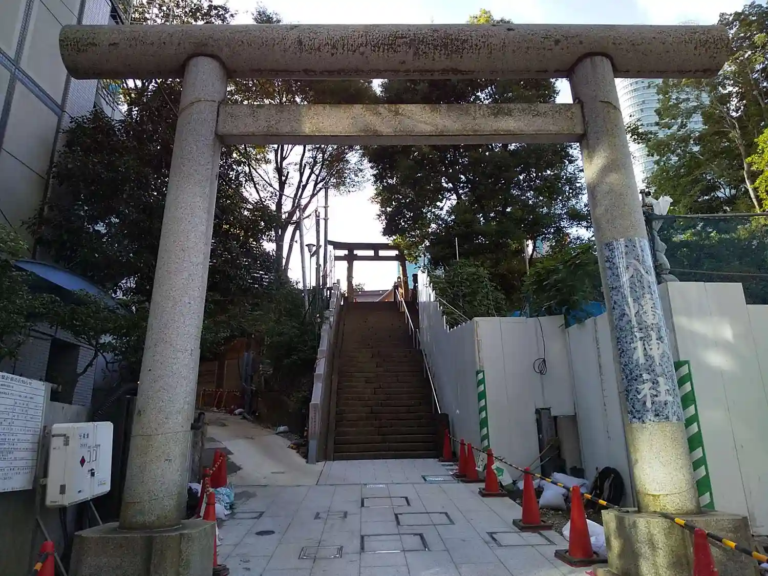 一の鳥居です。まだまだ工事中…な様相です。