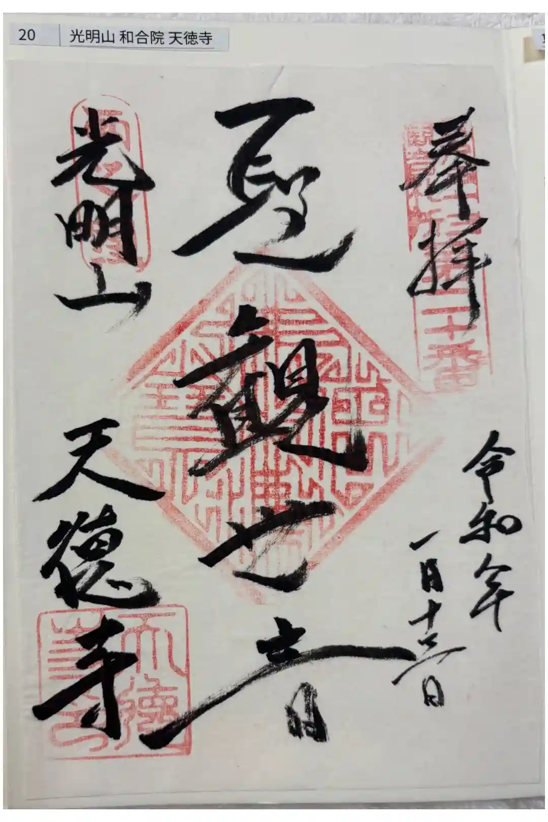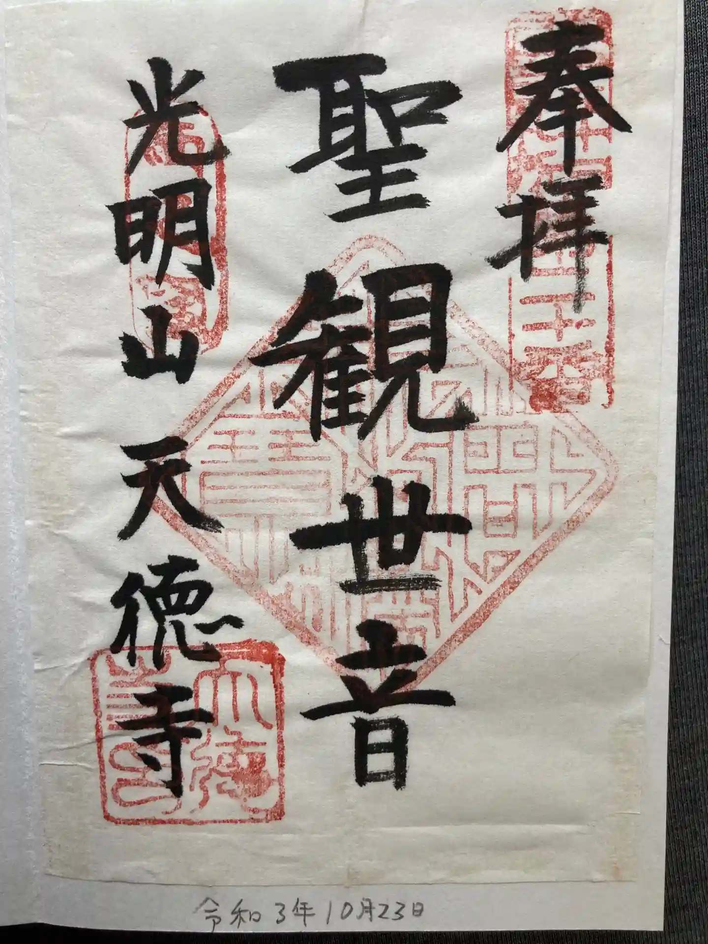 江戸三十三観音の二十番札所、天徳寺さんの聖観音の御朱印です。