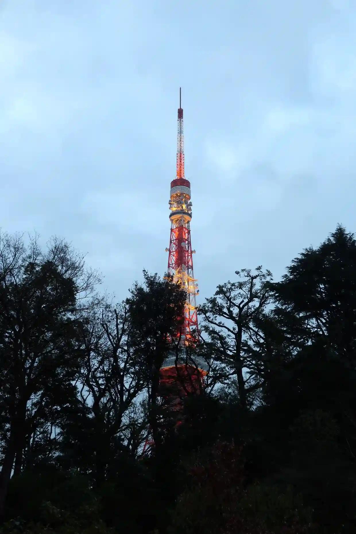 東京タワーを透かして見せた黒い木立が、冬の深さを
