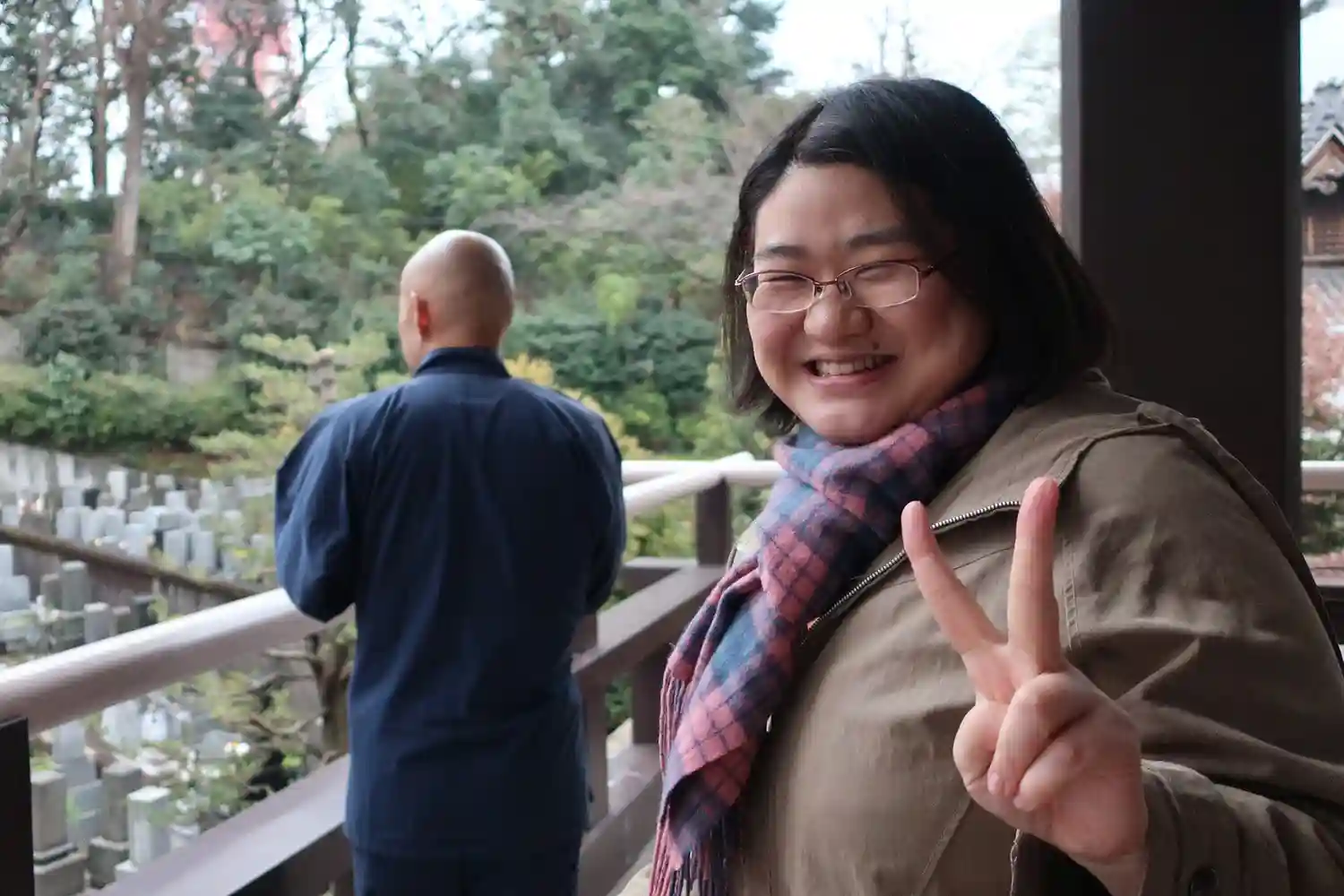 後ろではしょうけいさんが、お墓掃除のメンバーに