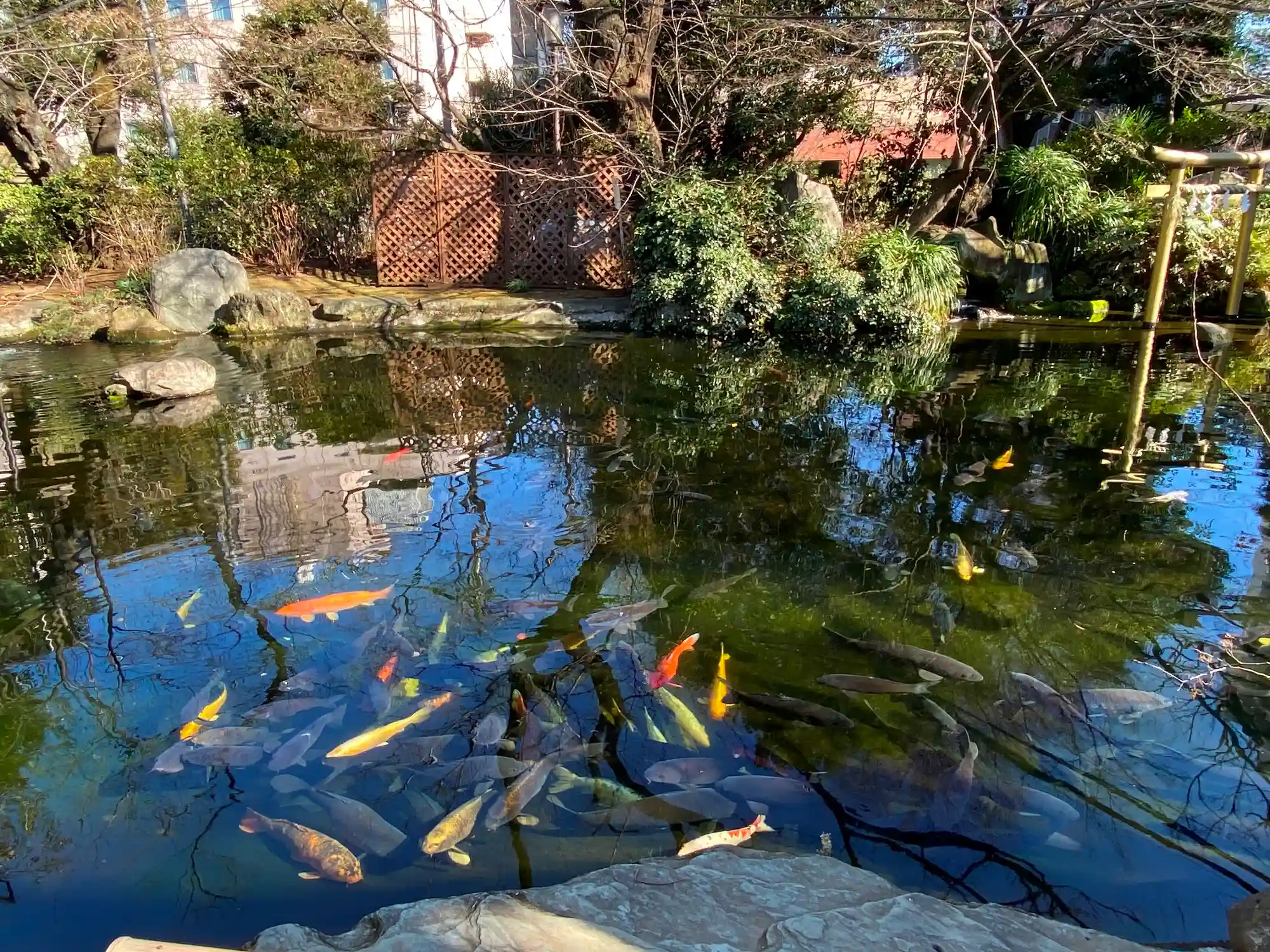 授与所右脇にある池。錦鯉がたくさん。