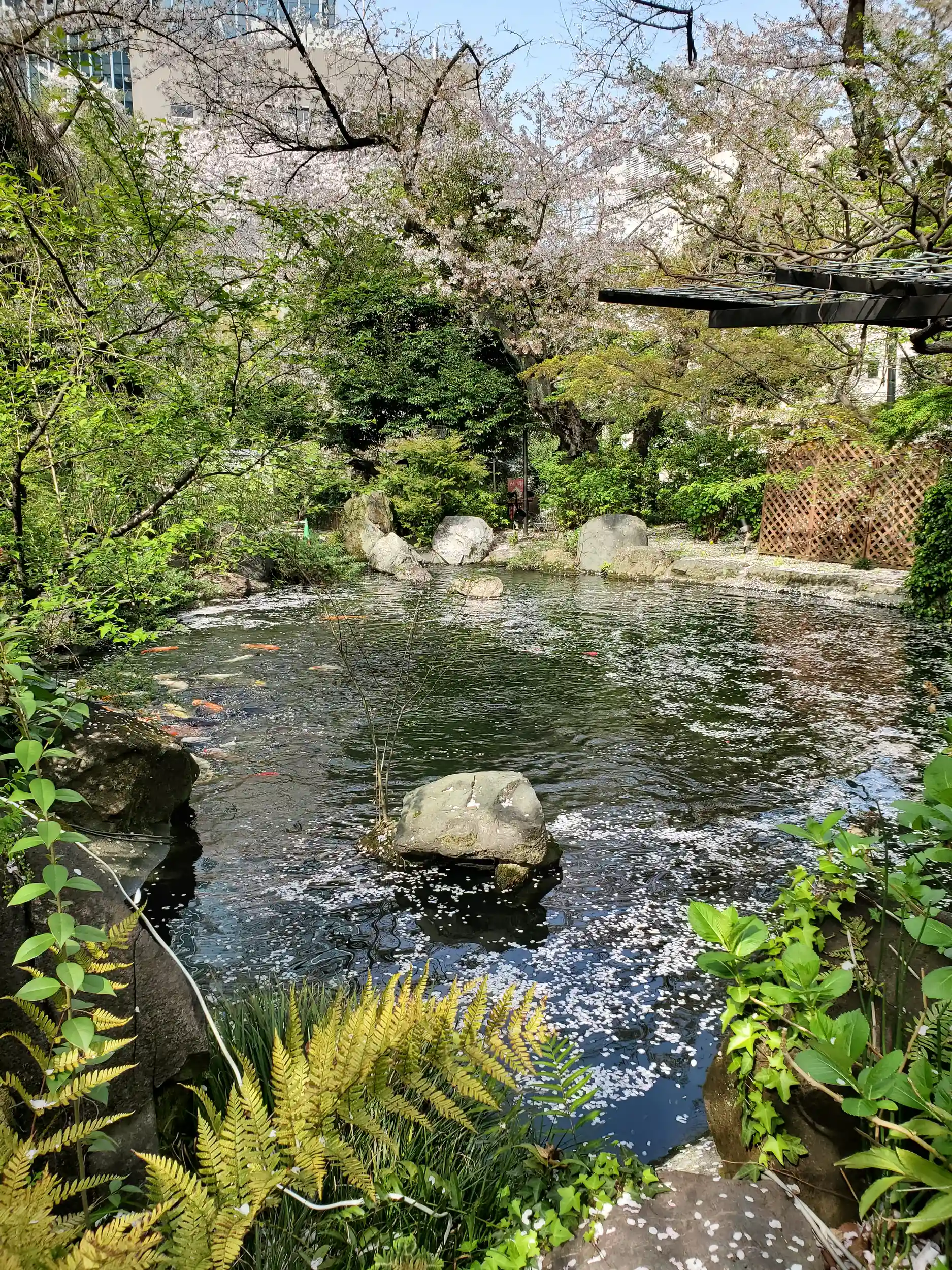 桜が綺麗で、鯉にエサをやってる子供も多くいました。