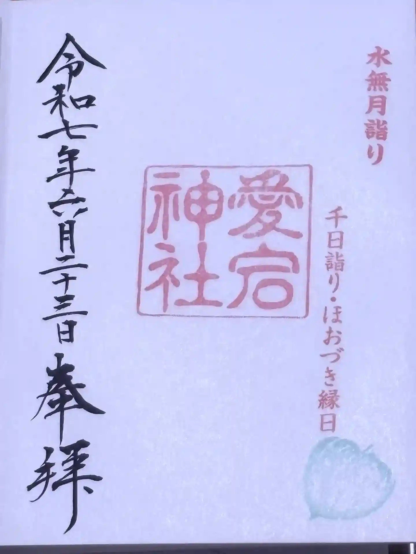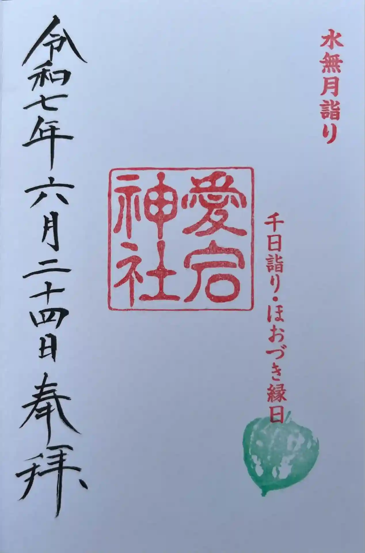 6月23日・24日にのみ御拝受される、千日詣り、ほおづき縁日の印が押された御朱印です。