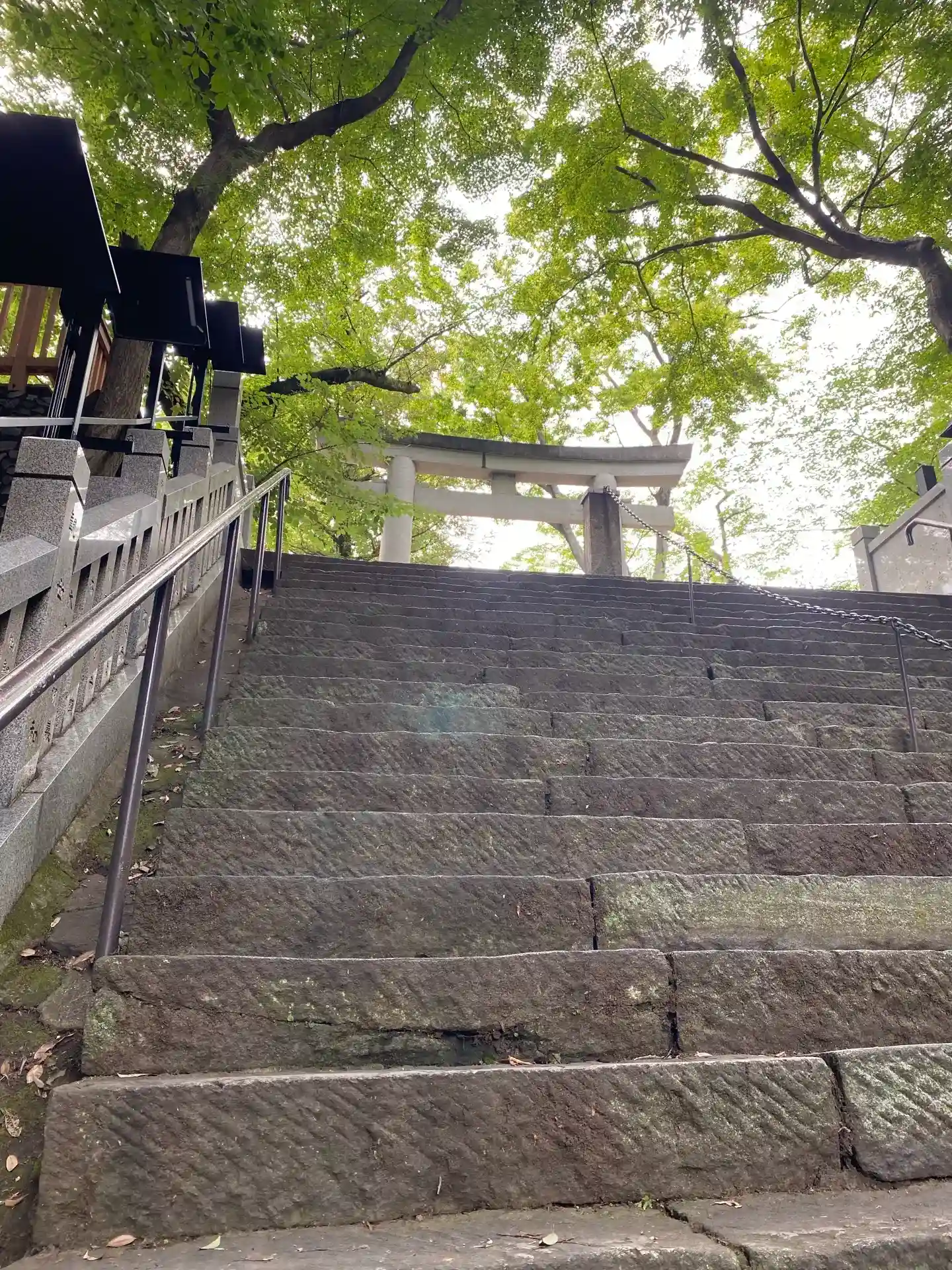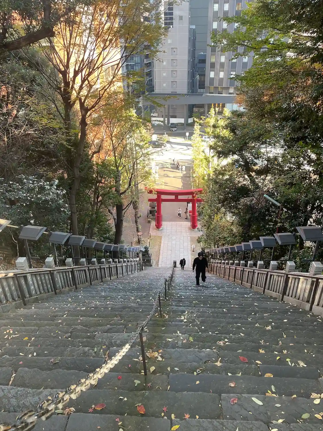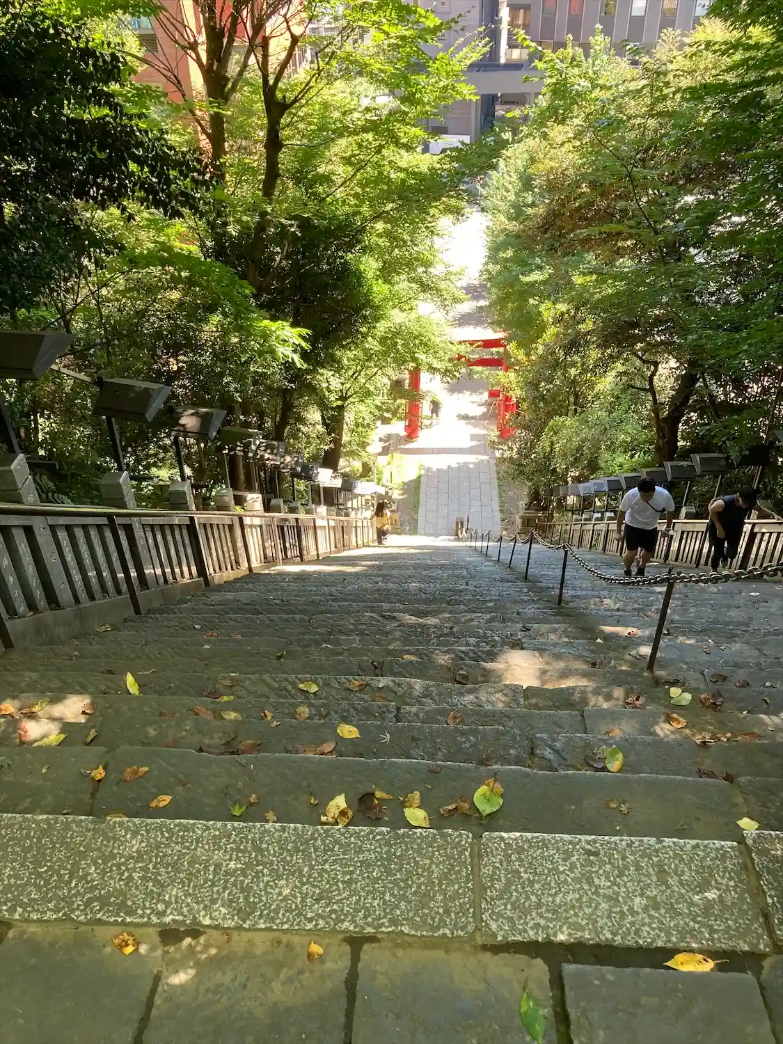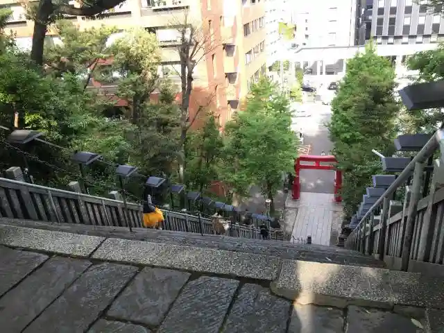 大きくはないですが、都会の真ん中でもとても静かで落ちつけて、好きな神社です。『出世の石段』はかなり…