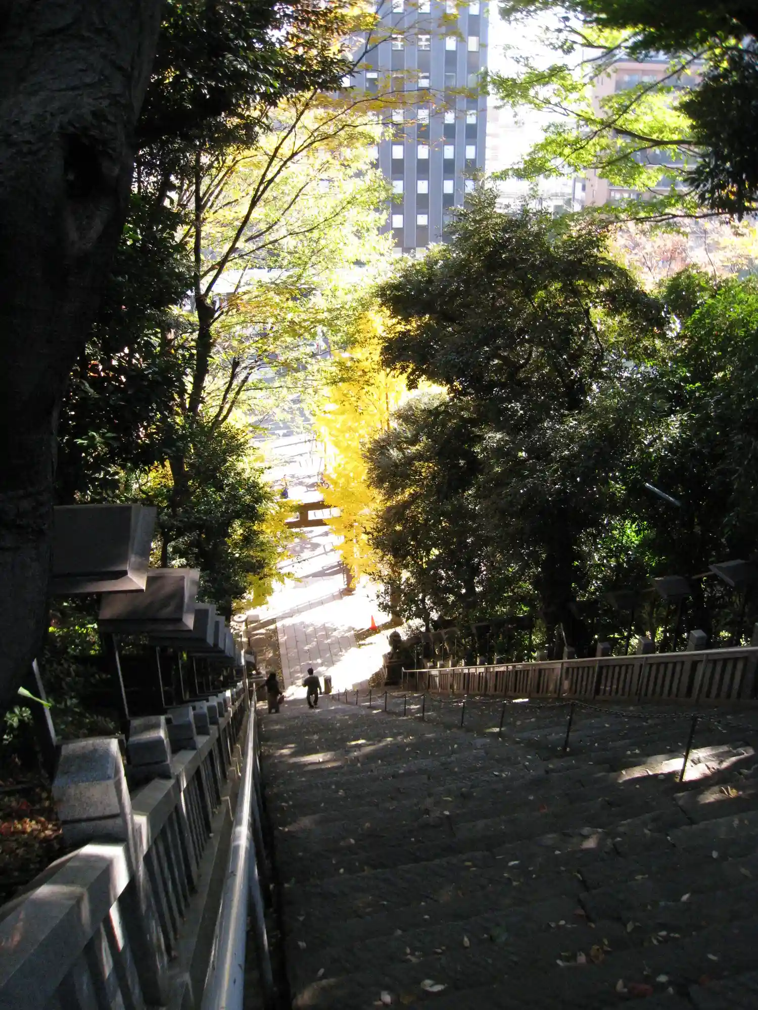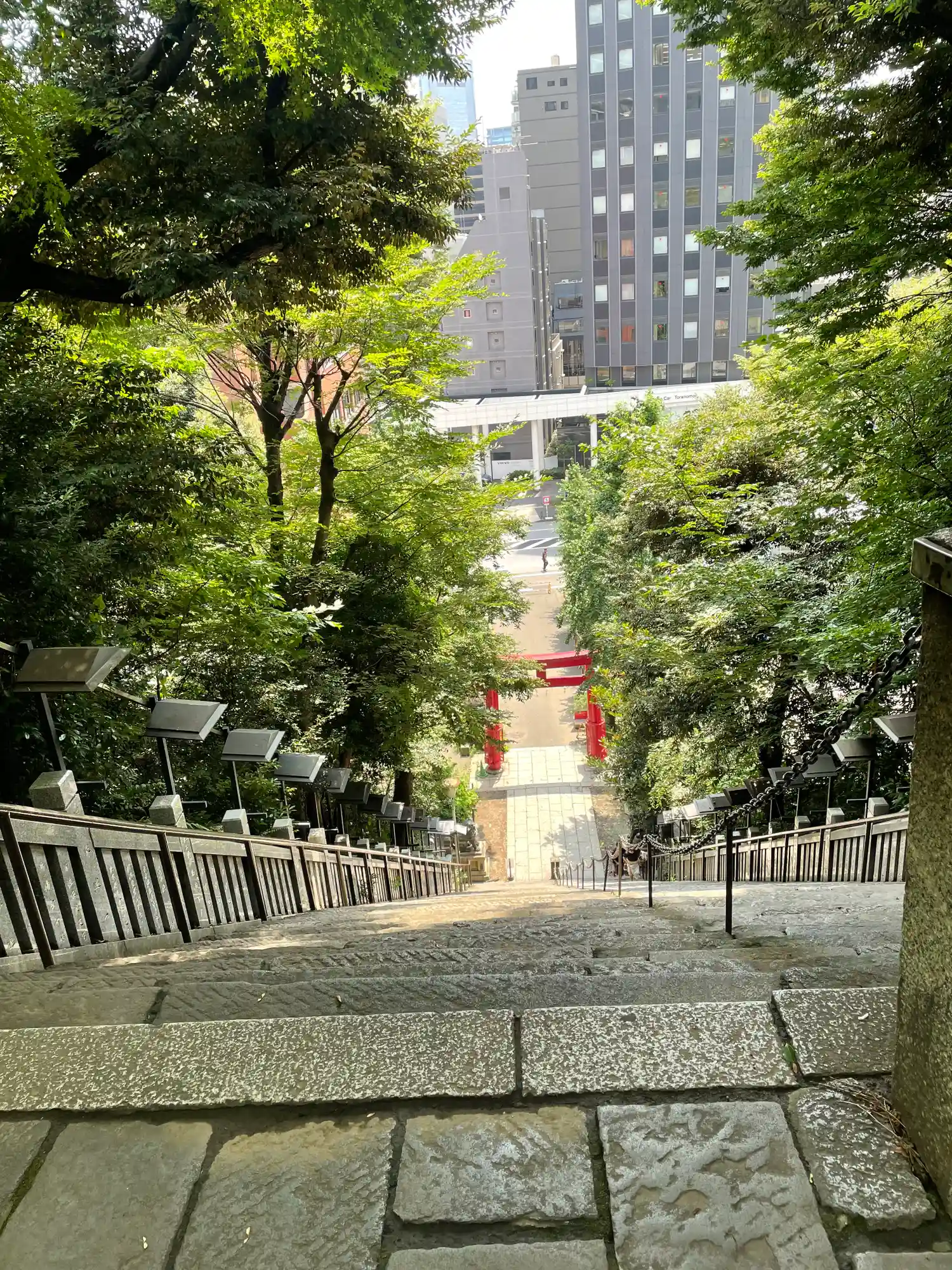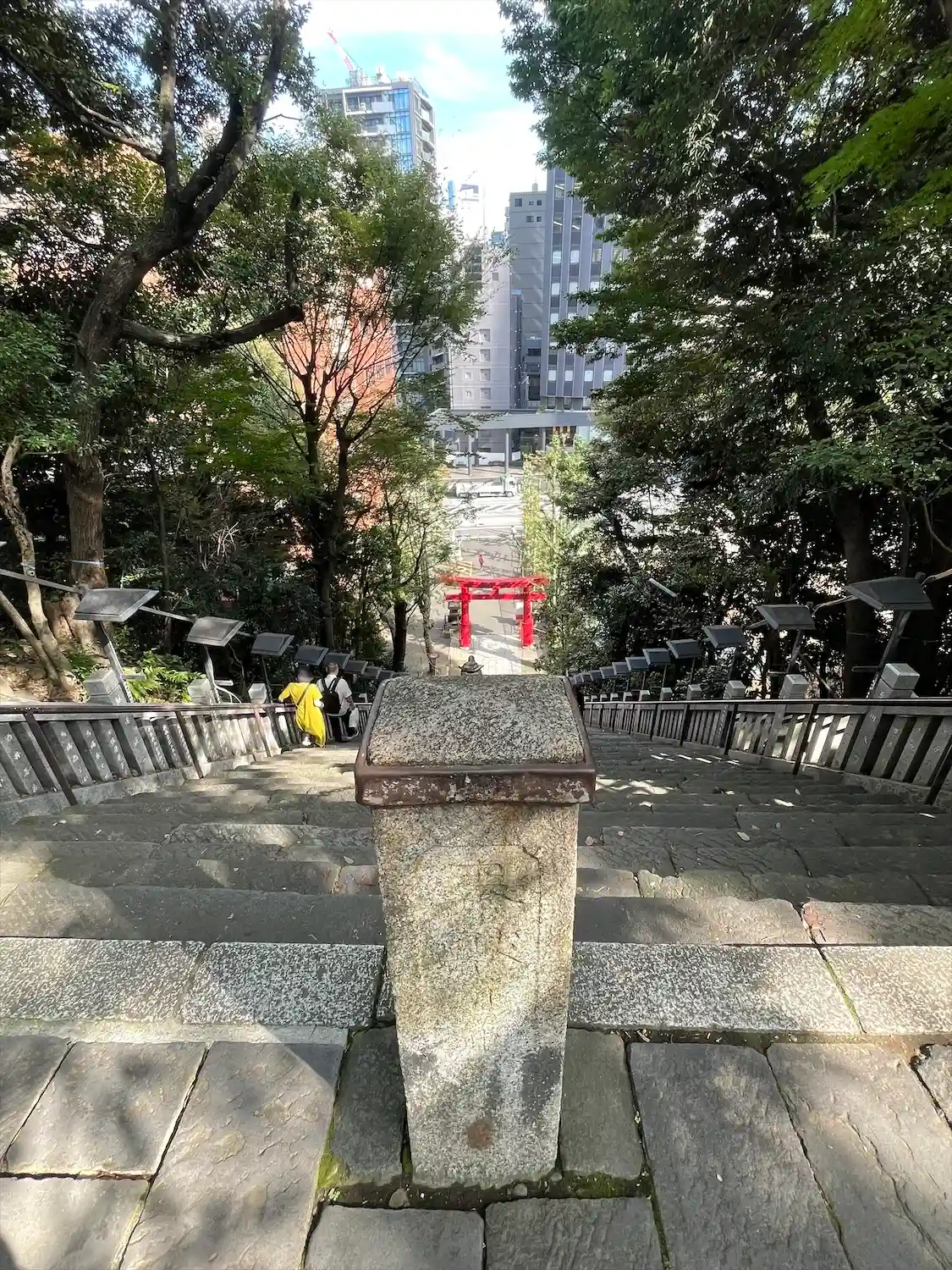 大きくはないですが、都会の真ん中でもとても静かで落ちつけて、好きな神社です。『出世の石段』はかなり…