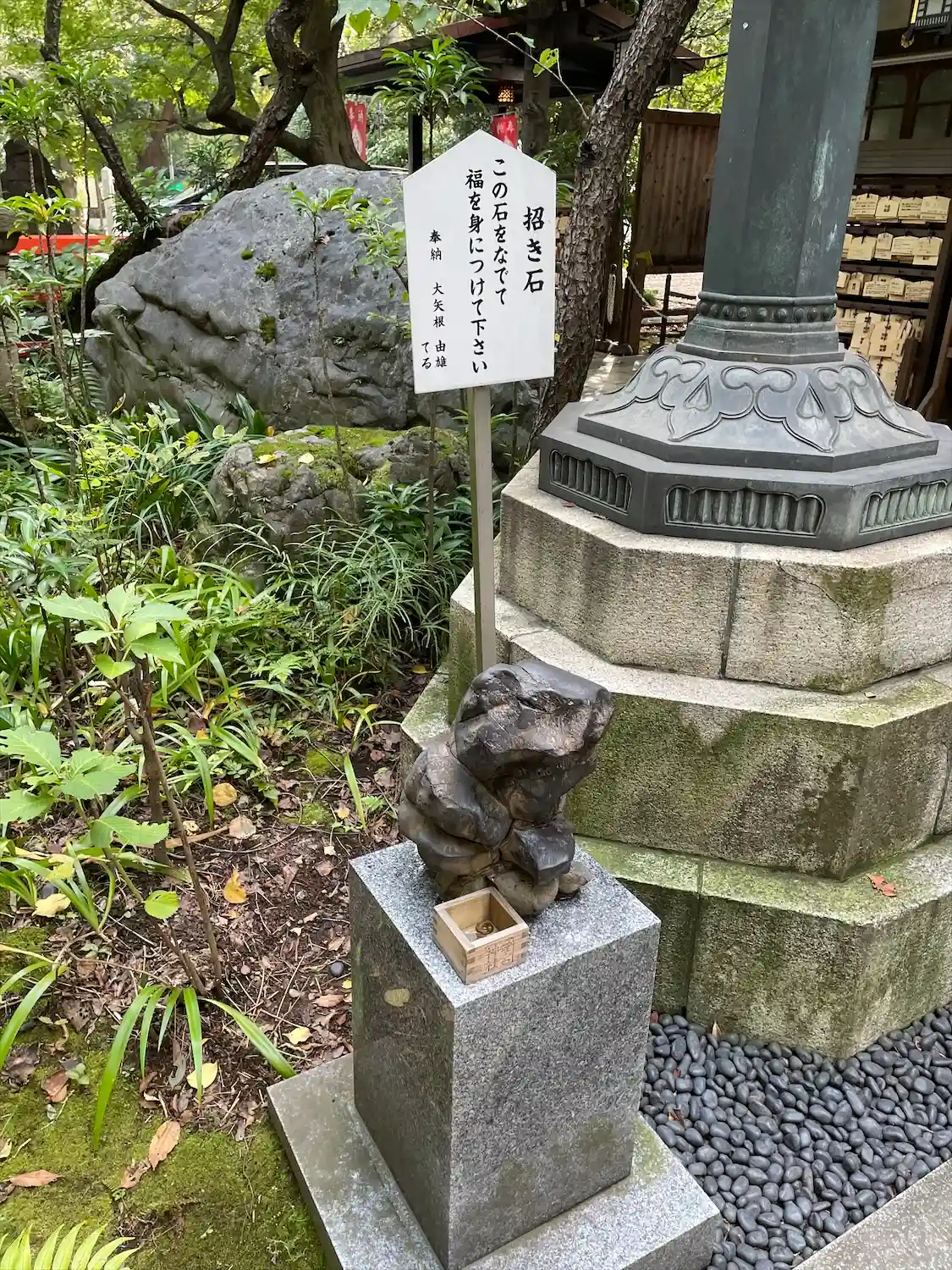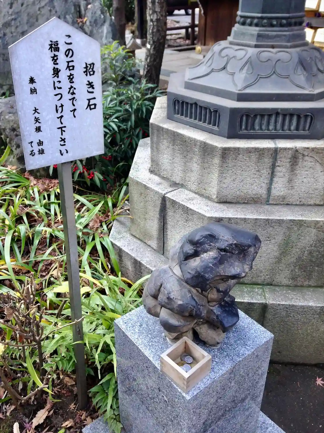 [招き石]この石をなでると福が身につくそうです。つるつるになっていました