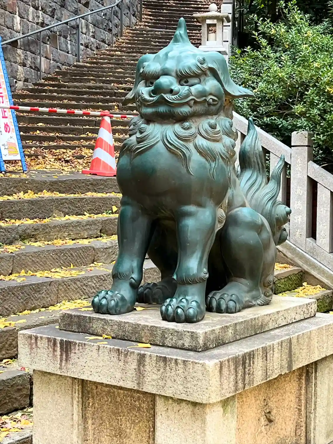 石段と狛犬さんにモミジ🍁素敵です😊