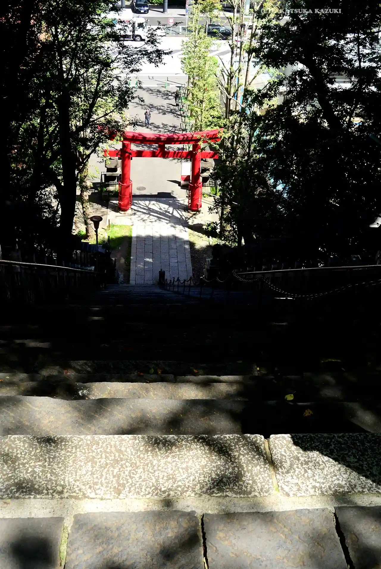 [出世の石段(男坂)]上から見下ろしたところ
