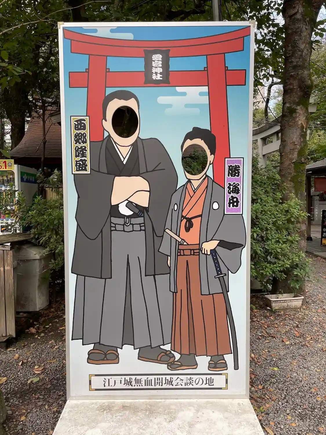 [顔はめパネル]愛宕神社は江戸城無血開城に向けて西郷隆盛と勝海舟が会談した場所でもあります