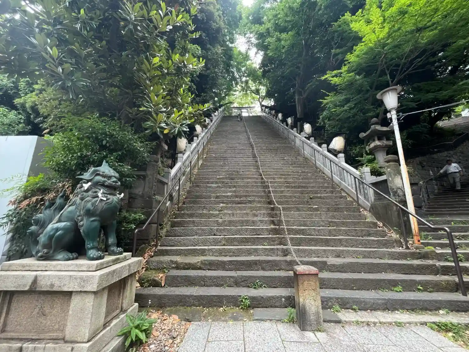 神社に上る急な階段は「出世の階段」と呼ばれています。…