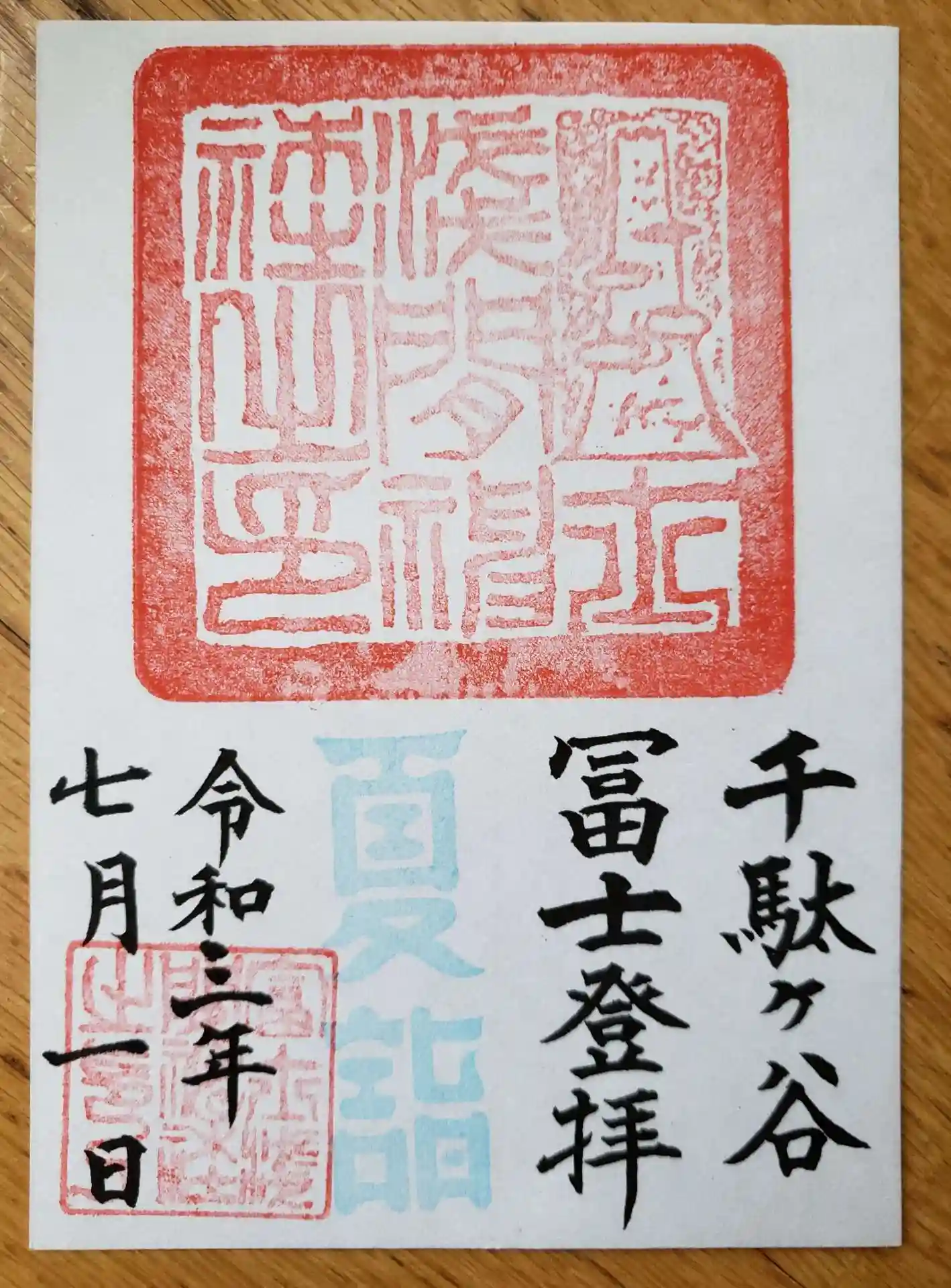 7/31までの限定御朱印もいただけるとのことで、雨の中(丁度止んでいましたが)足元悪く、やや不安ながら、また富士塚にも登り、二種の御朱印をいただいてきました。