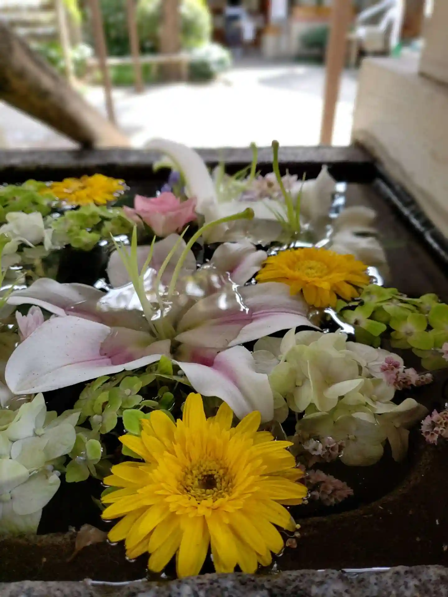 急に気温が高かった週末のせいか、お花の傷みも始まっていて、やはり入れ替えてすぐに拝見したい…我慢です!そんな傷み始めの箇所を外して撮りました。先週で夏バージョンが終わり、今週から秋バージョンとのことですが、パステル系で可愛らしいです。