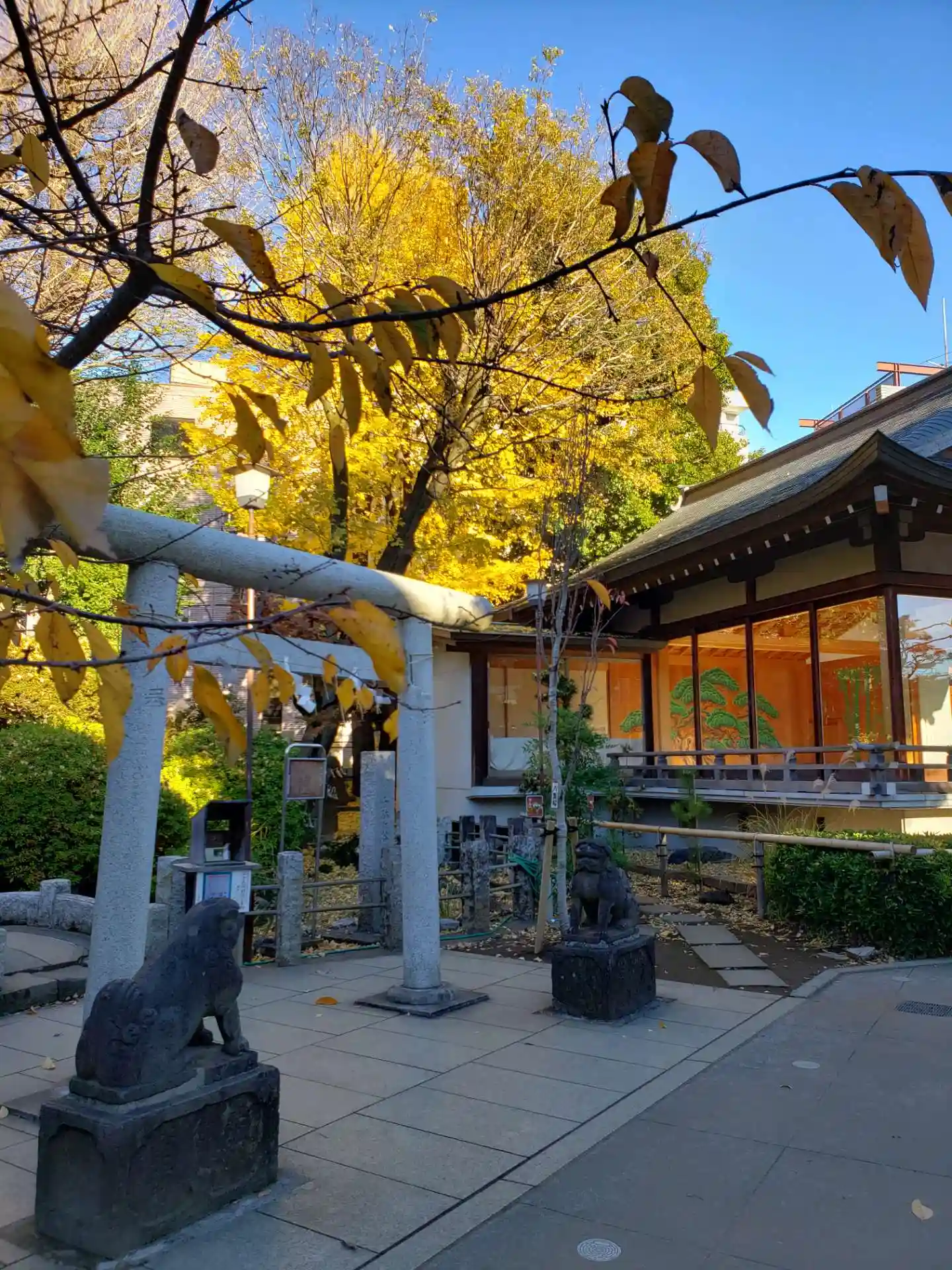 御神木の大イチョウも、境内のほかの木も、紅葉は終わりに近づいています。