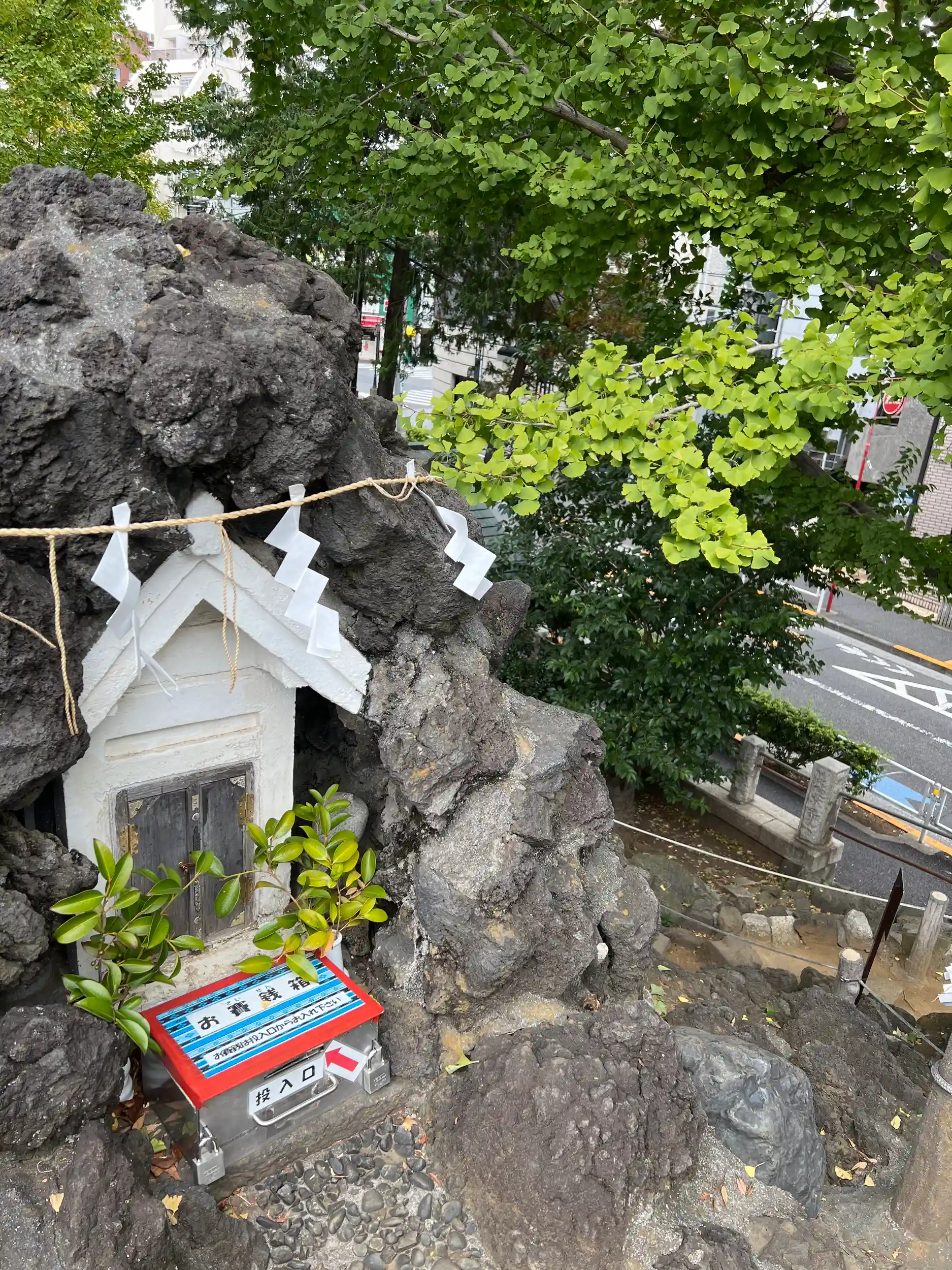 こちらの富士塚の大きな特徴は、今もなお実際に登ることができる点です。富士塚には安全上の理由や文化財保護の観点から立ち入り禁止となっているものも少なくありませんが、鳩森八幡神社の富士塚は例外的に開放されており、参拝者が登頂して景観を楽しむことが可能です。小高い塚とはいえ、曲がりくねった石段を上りきった先には小さな達成感があり、江戸時代の人々が富士登拝の代わりにここを訪れた気持ちを今に伝えてくれます。