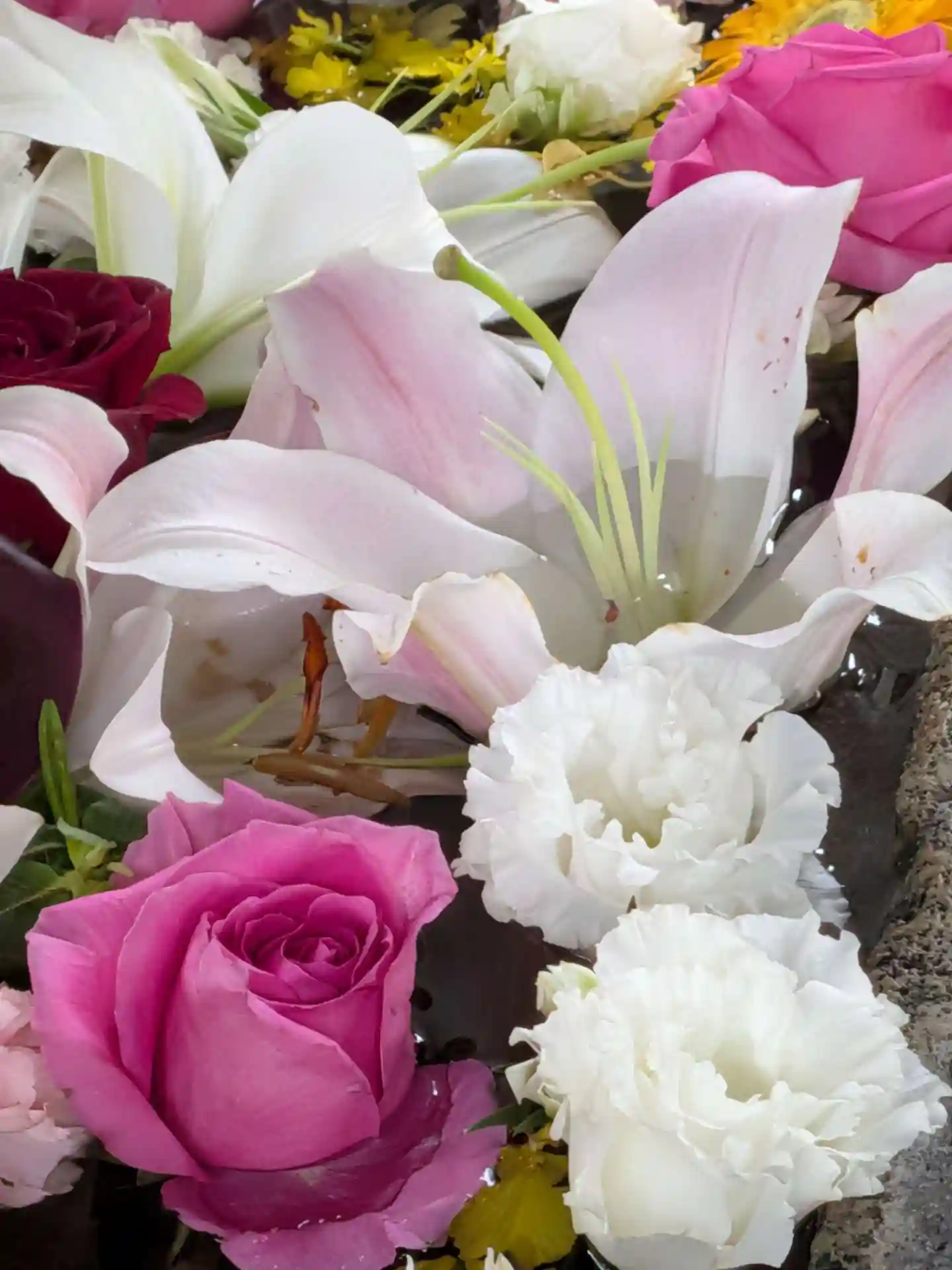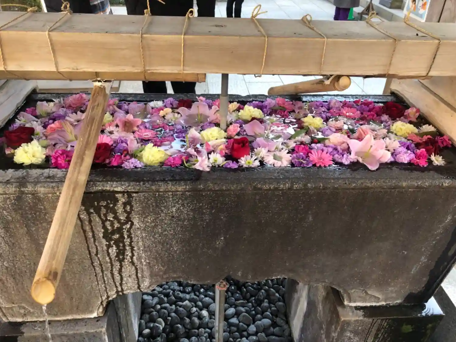 新年の華やかな花手水…