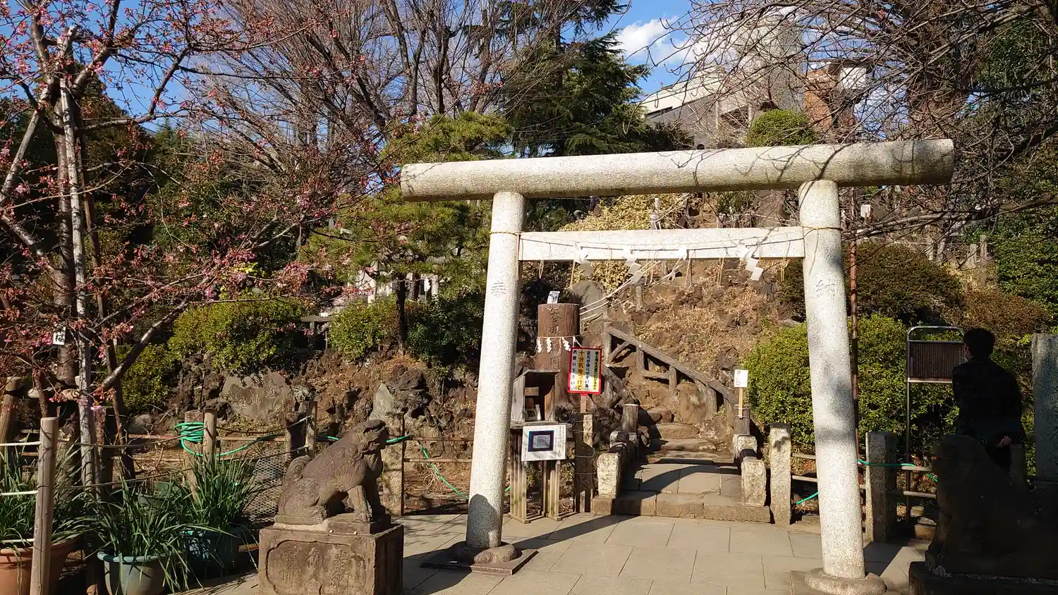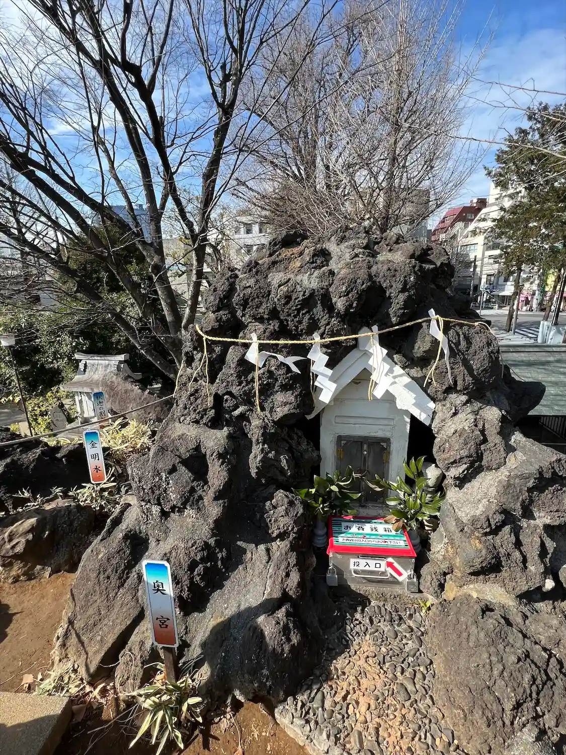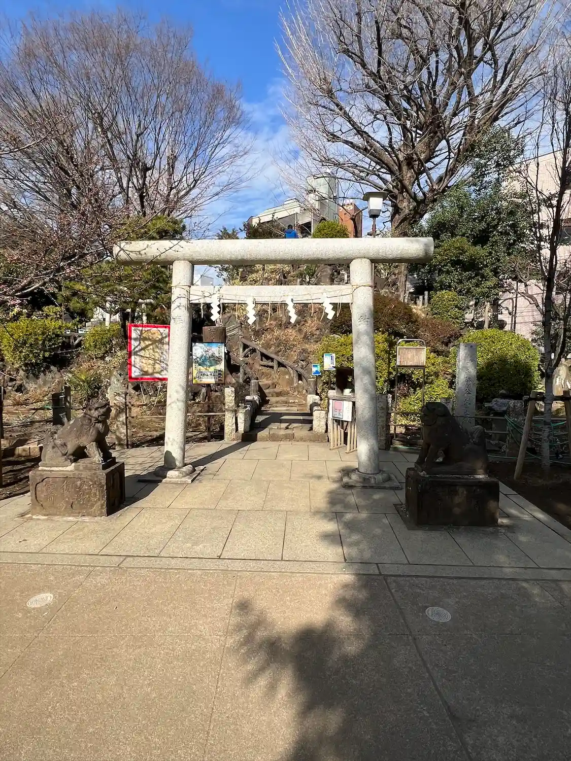 将棋会館のすぐ近くのこちらに参拝に、境内に富士山もありま…
