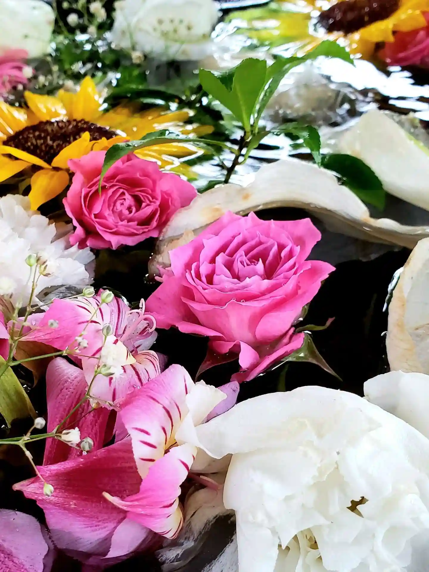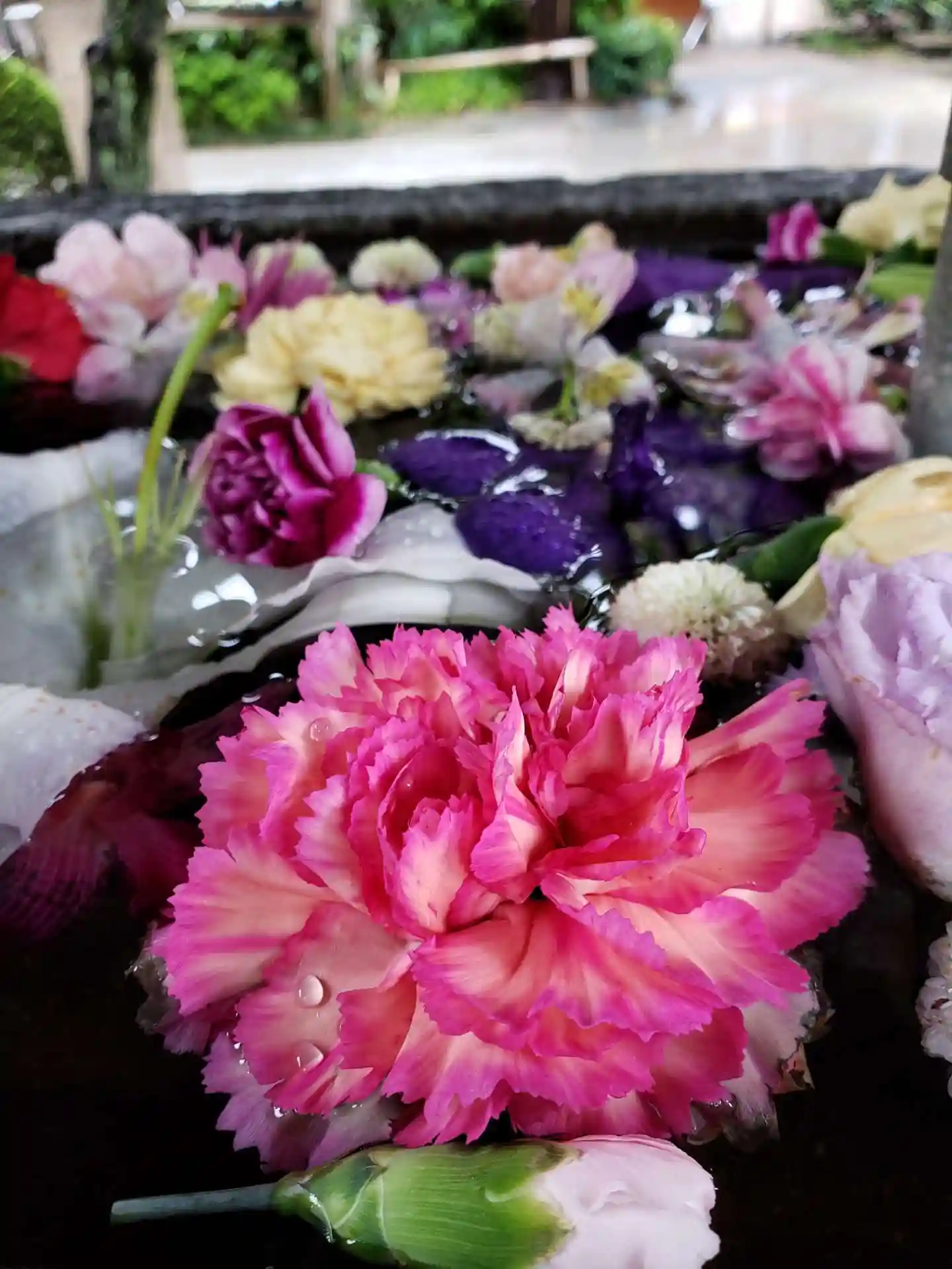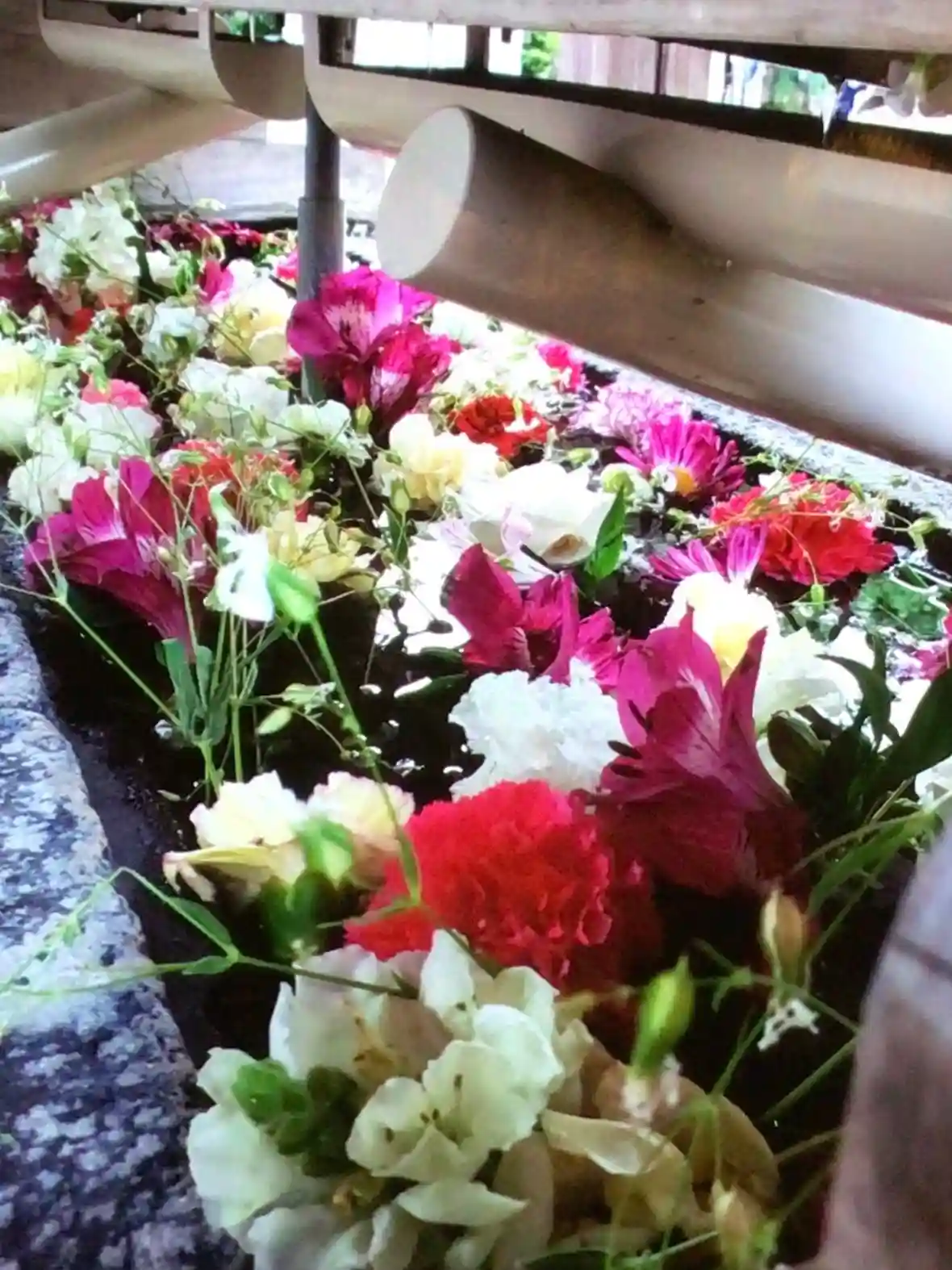 ウキウキしそうなピンクが一杯の花手水です^_^