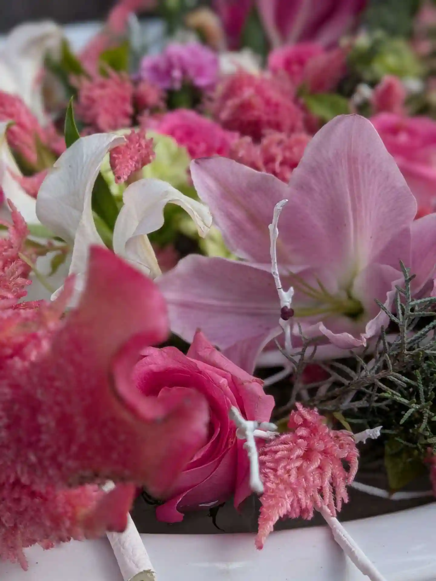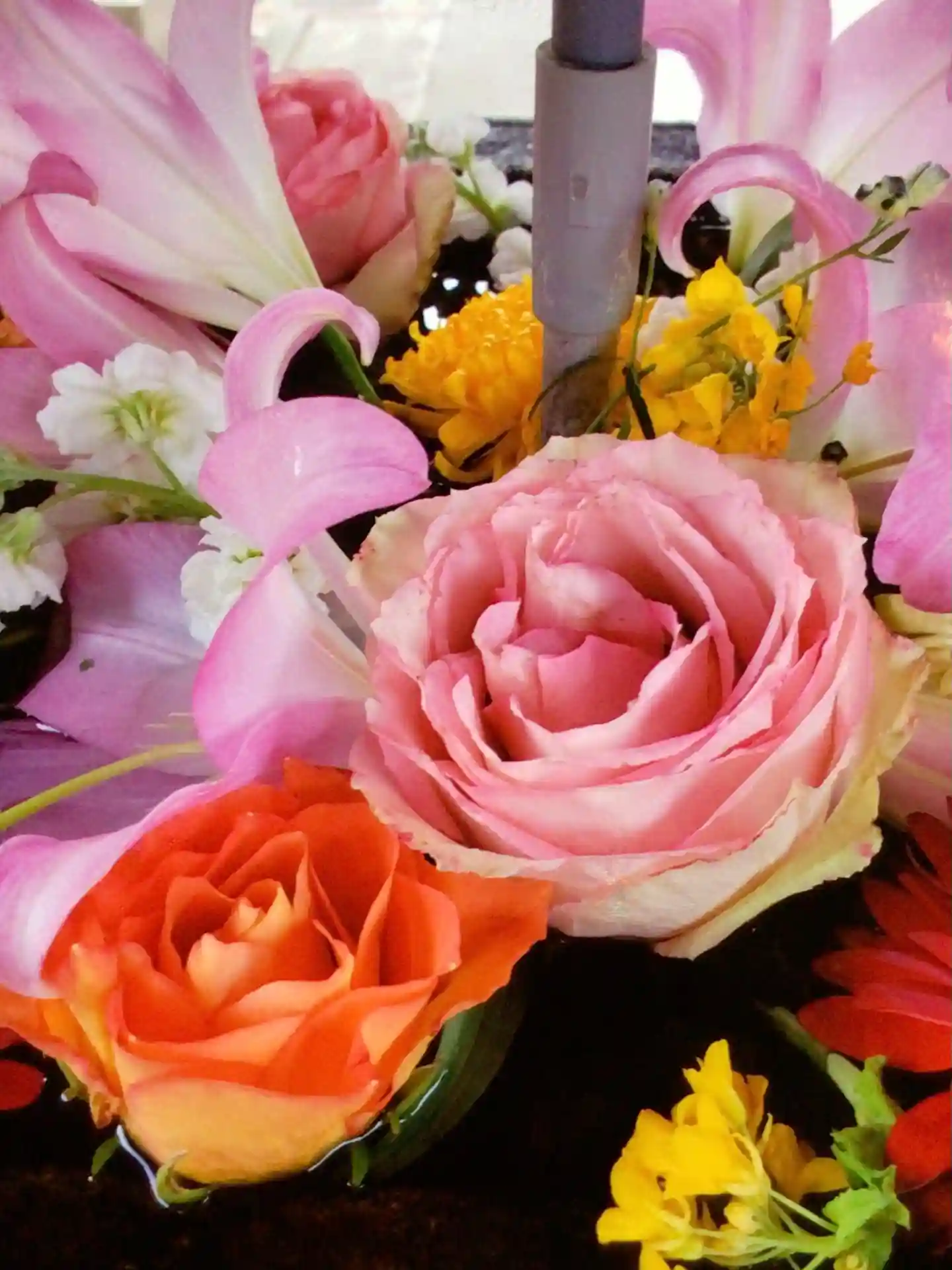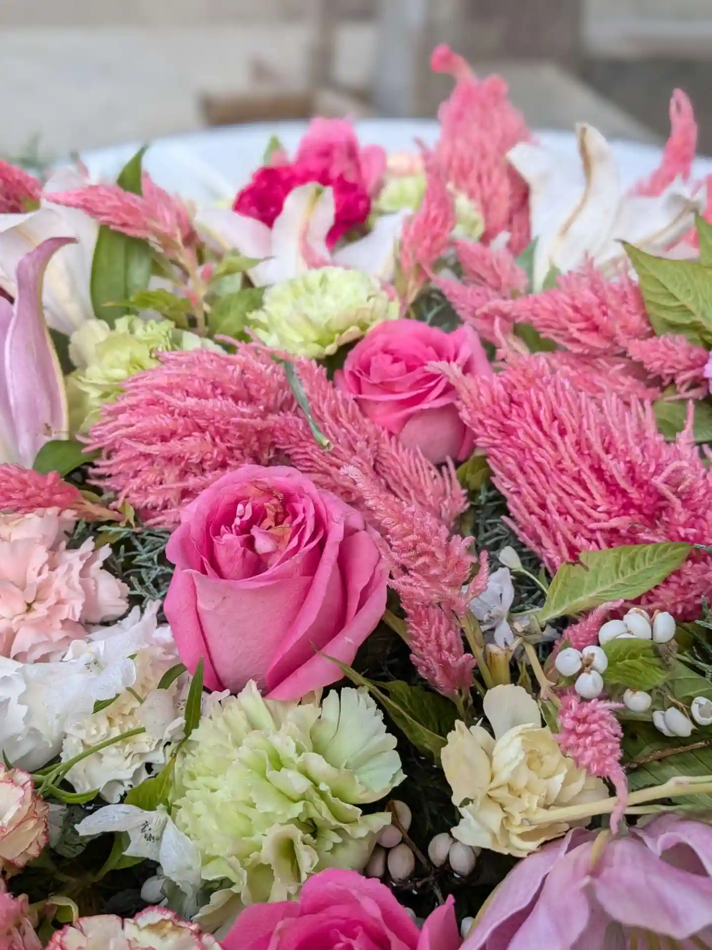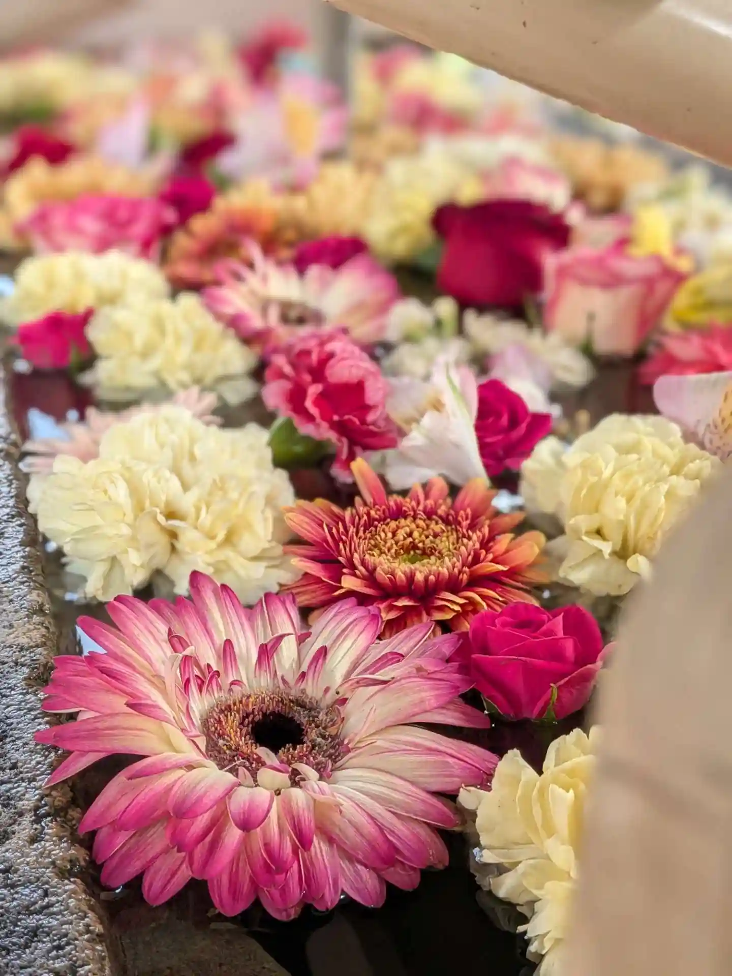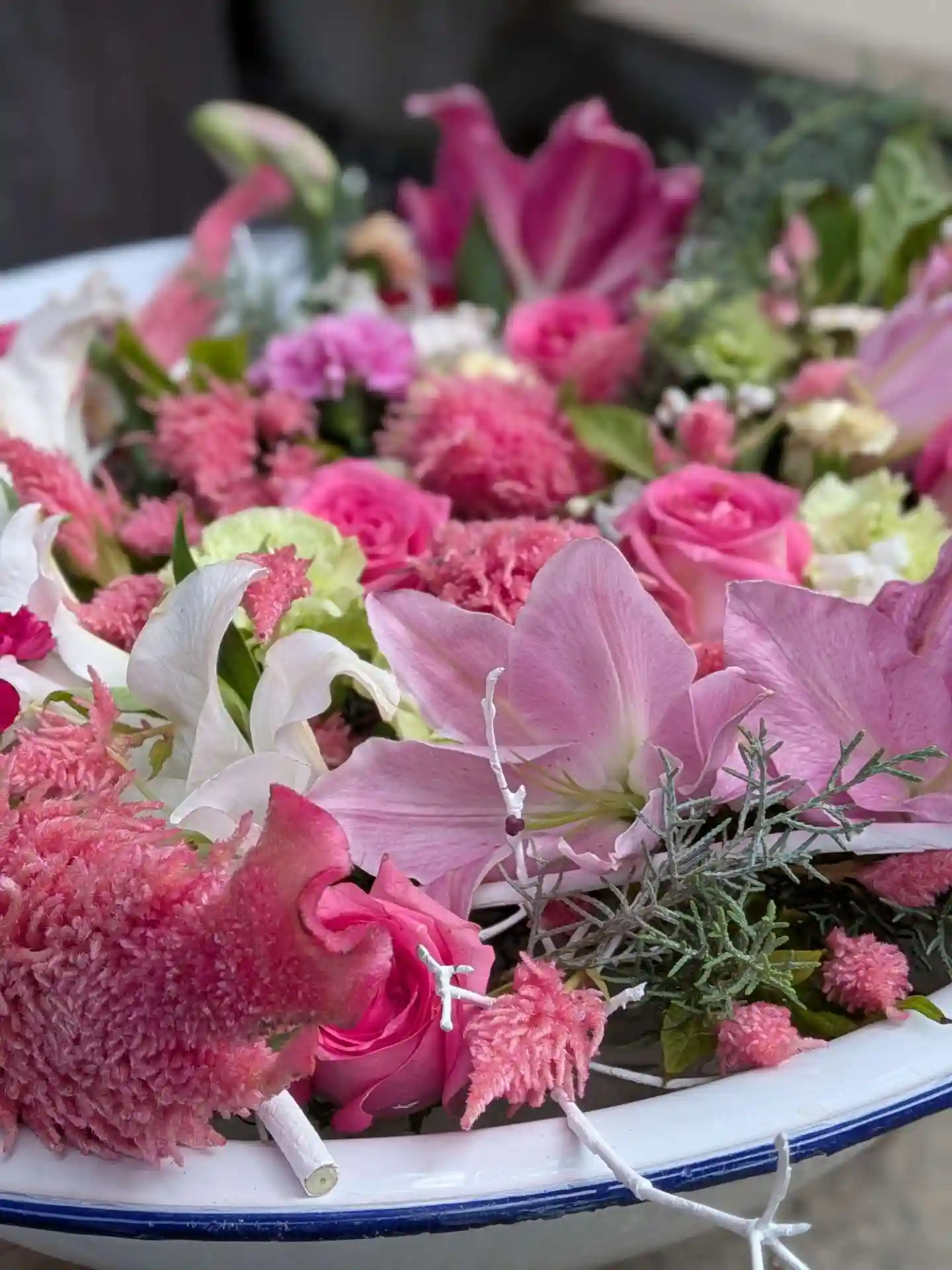 花手水が新しく入れ替えされて、淡い色合いで可愛い花手水に癒されました。