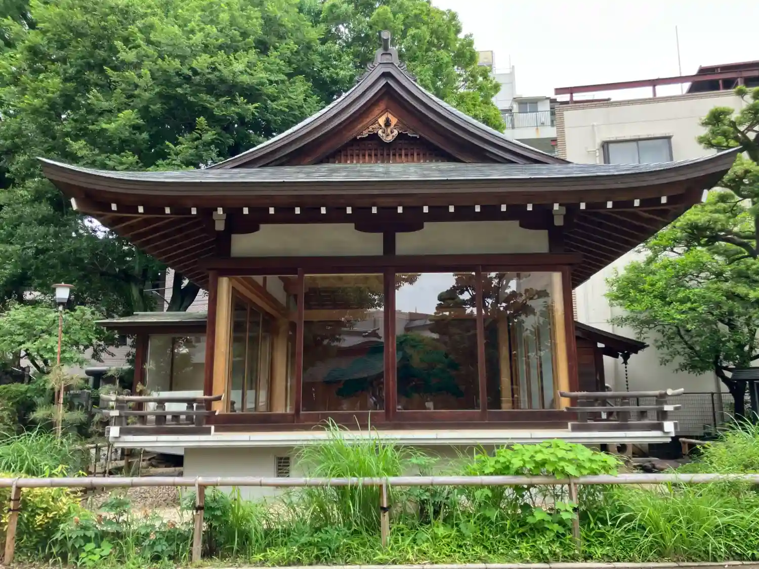 神楽殿はガラス…