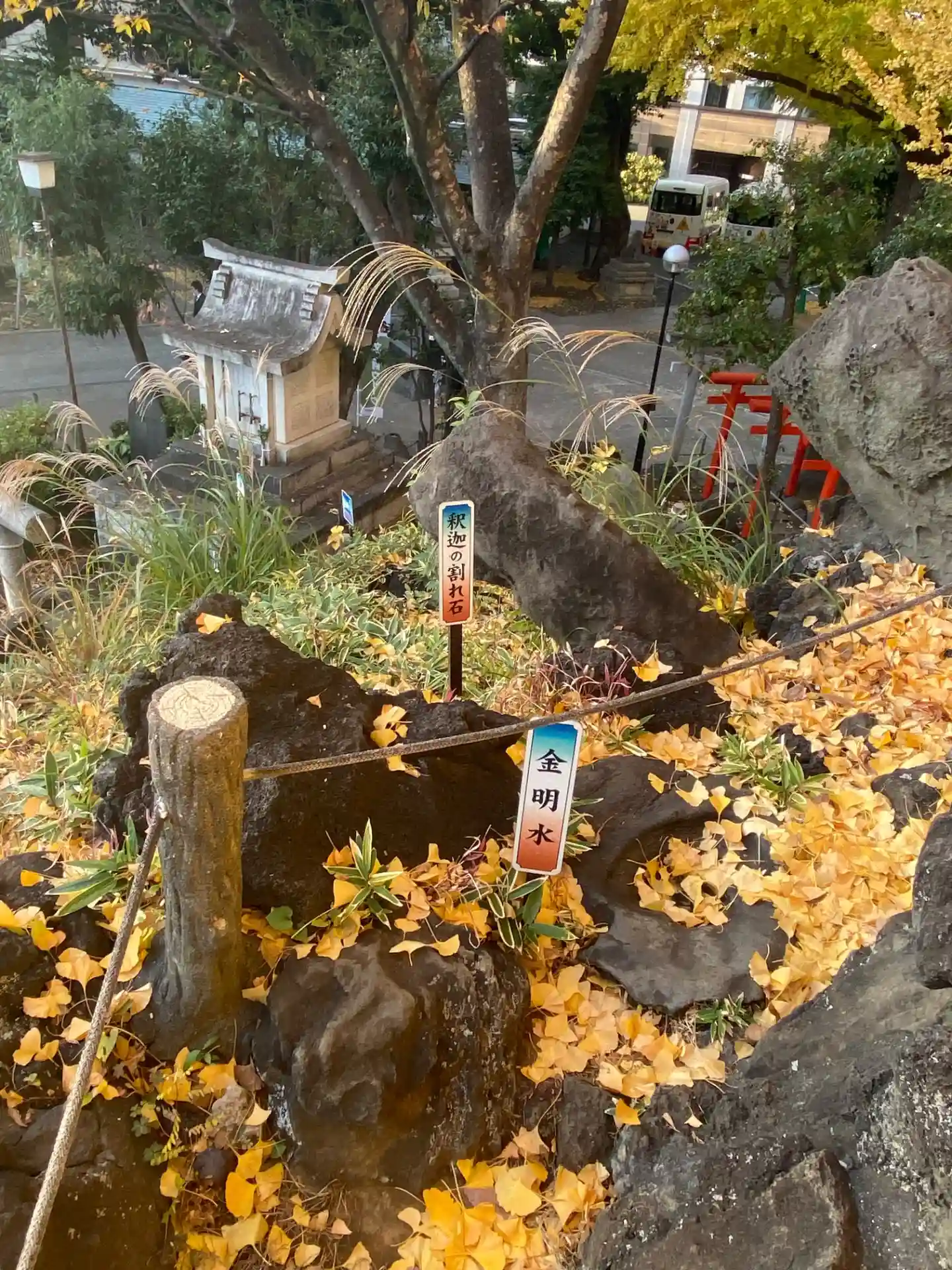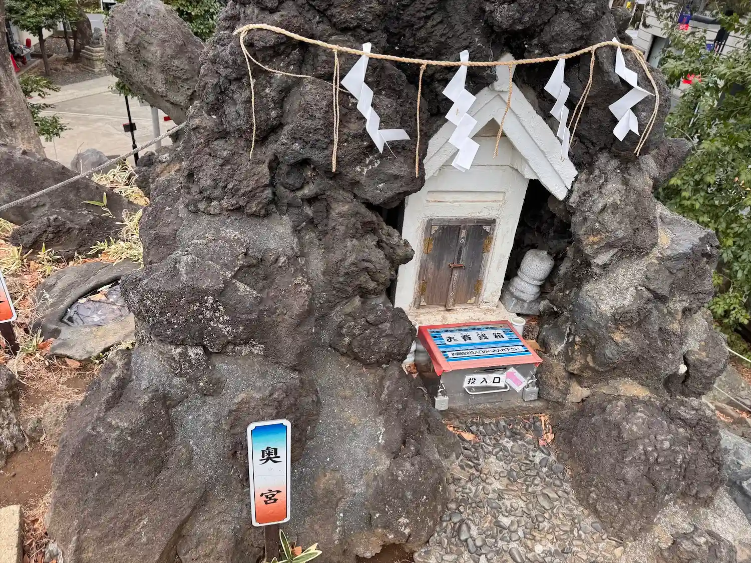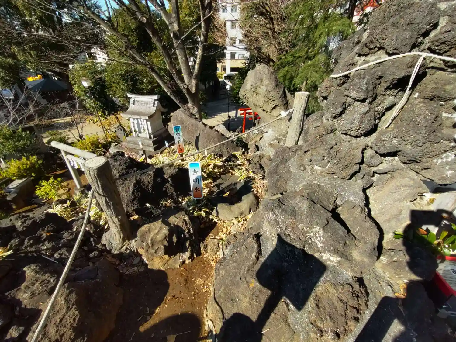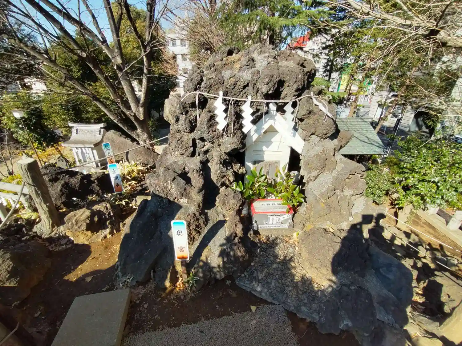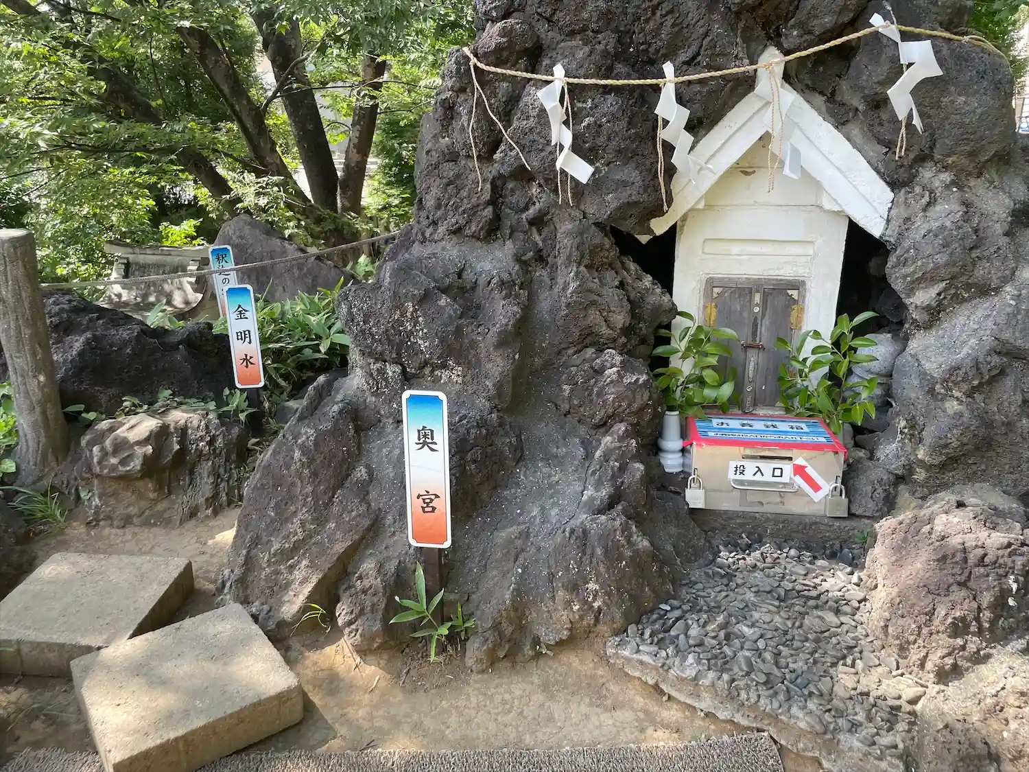 富士塚 金明水と釈迦の割れ石