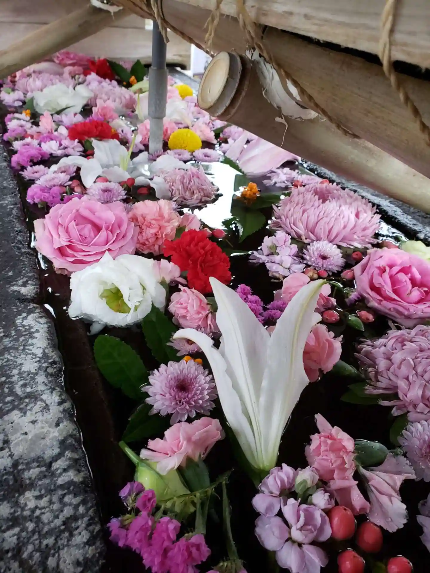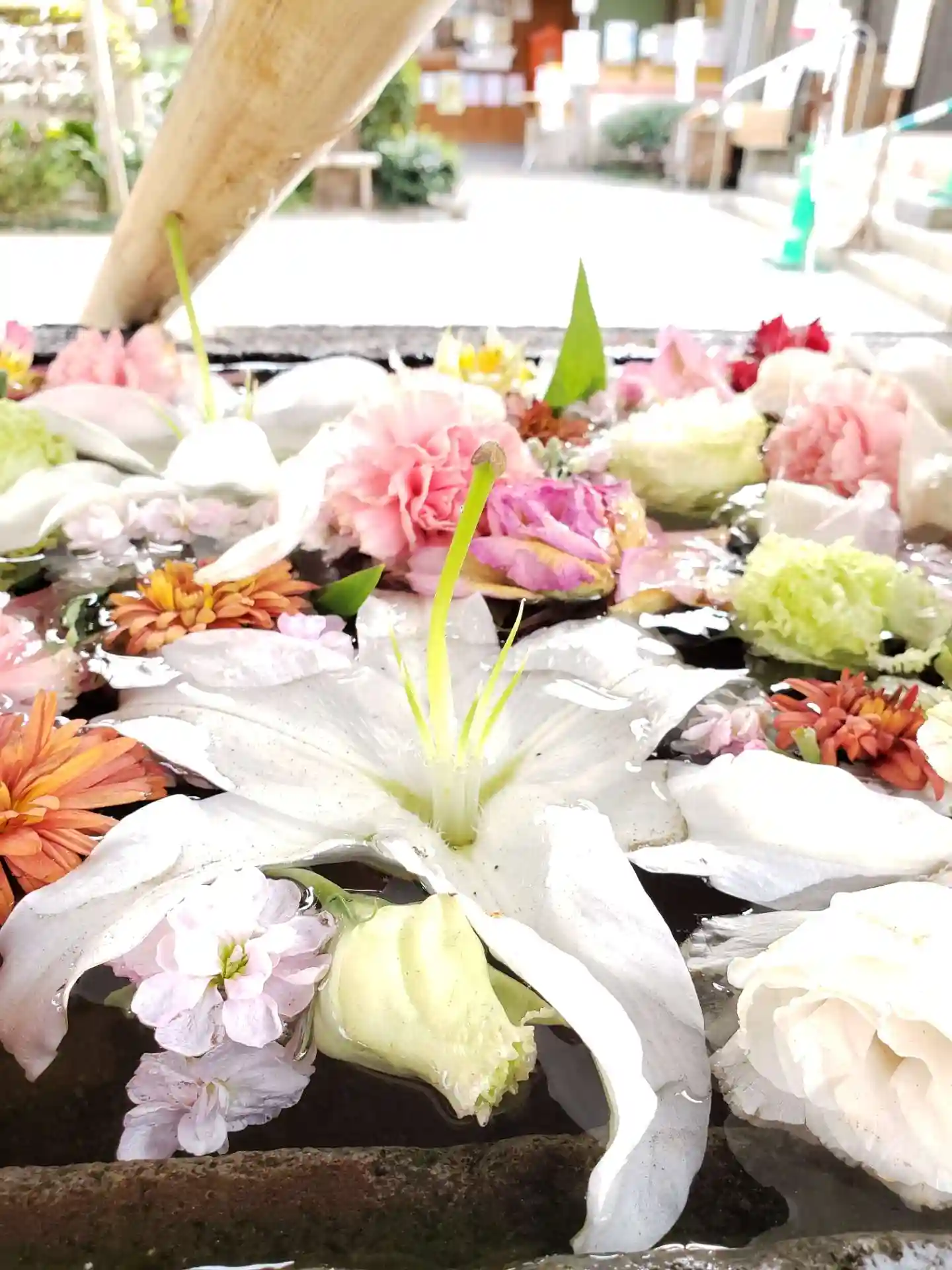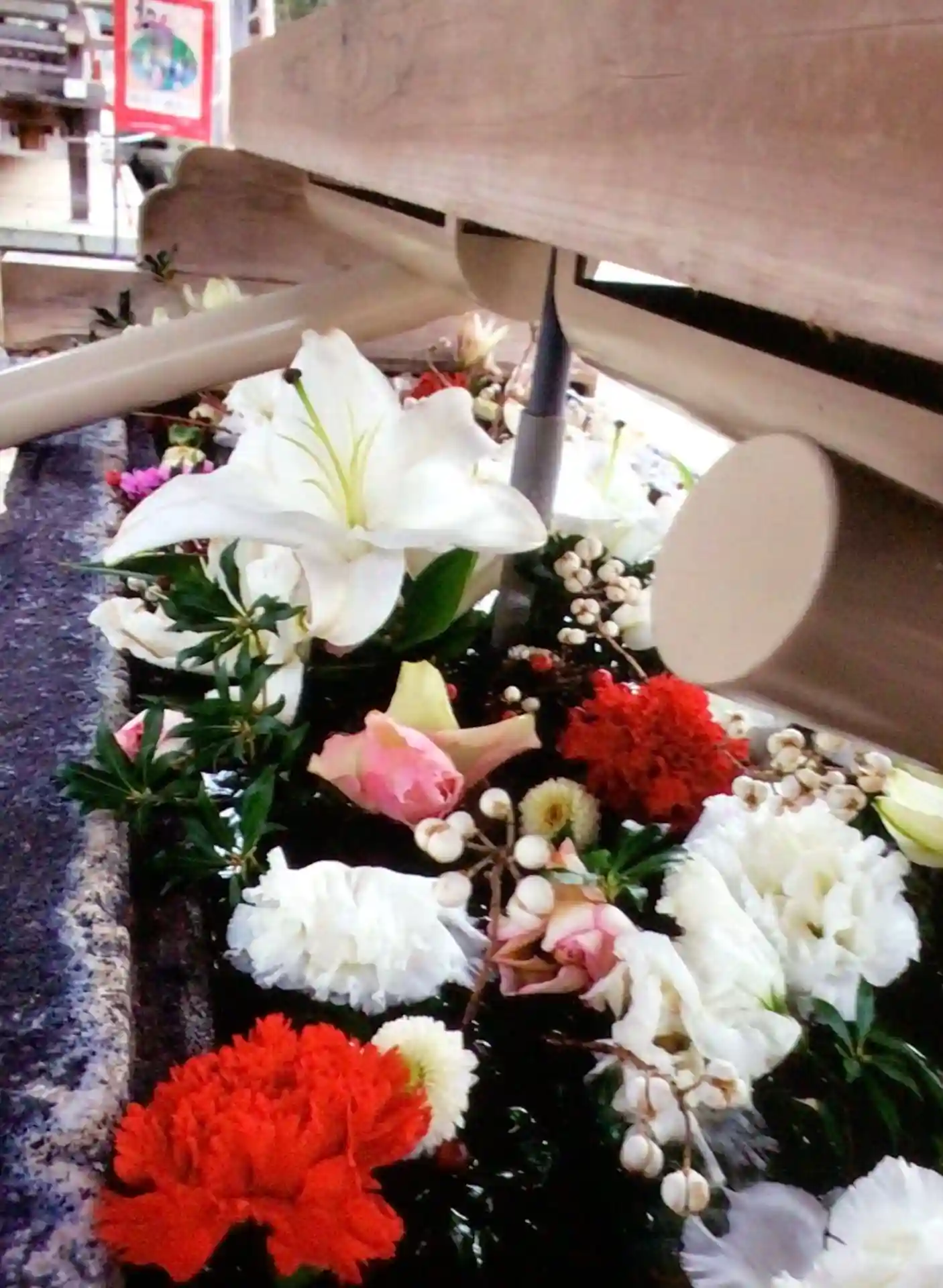 大晦日に入れられたお正月花手水を、なんとか見たくて、1/6になってしまったのでもう駄目かな…と思い…